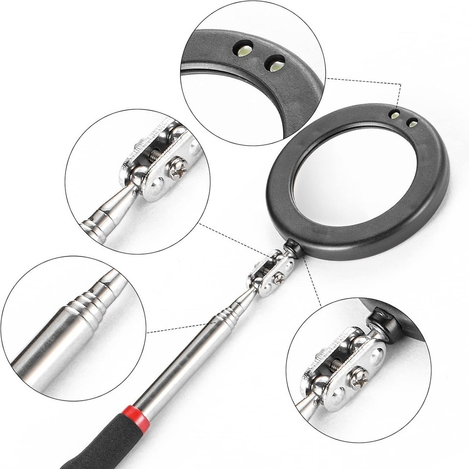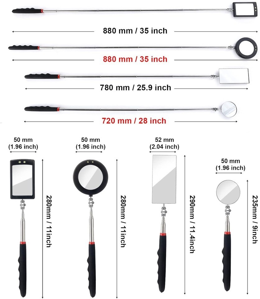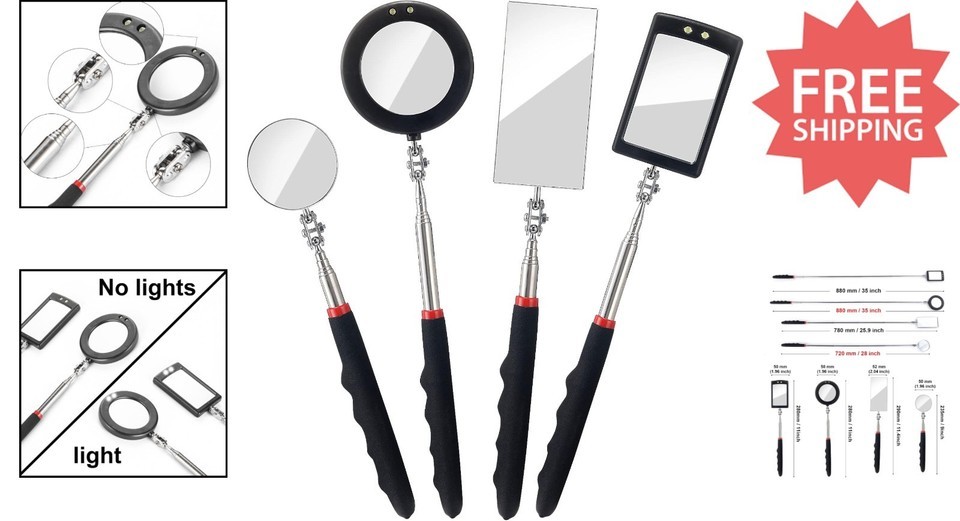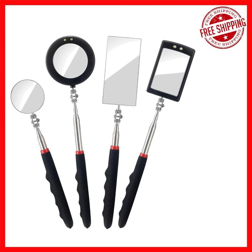 - Adjustable 4-Piece Telescoping Mirror Set with LED Light for Precise Inspections