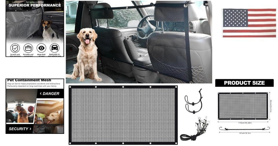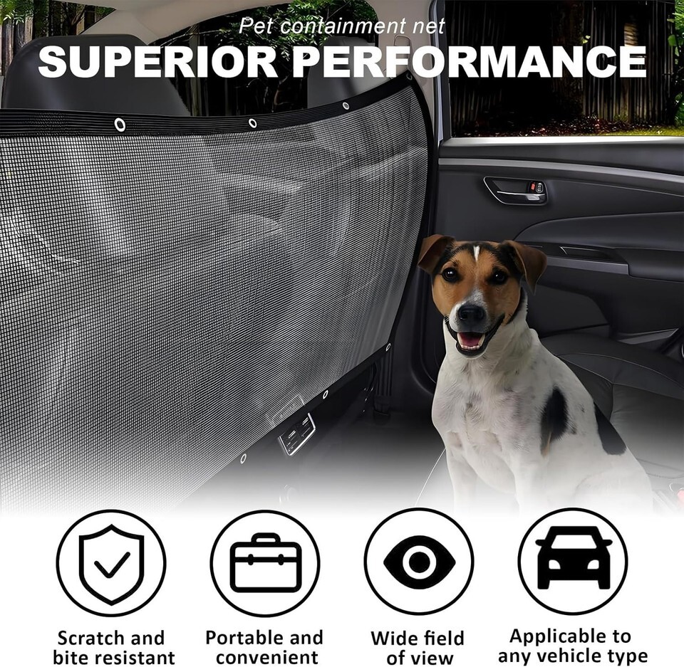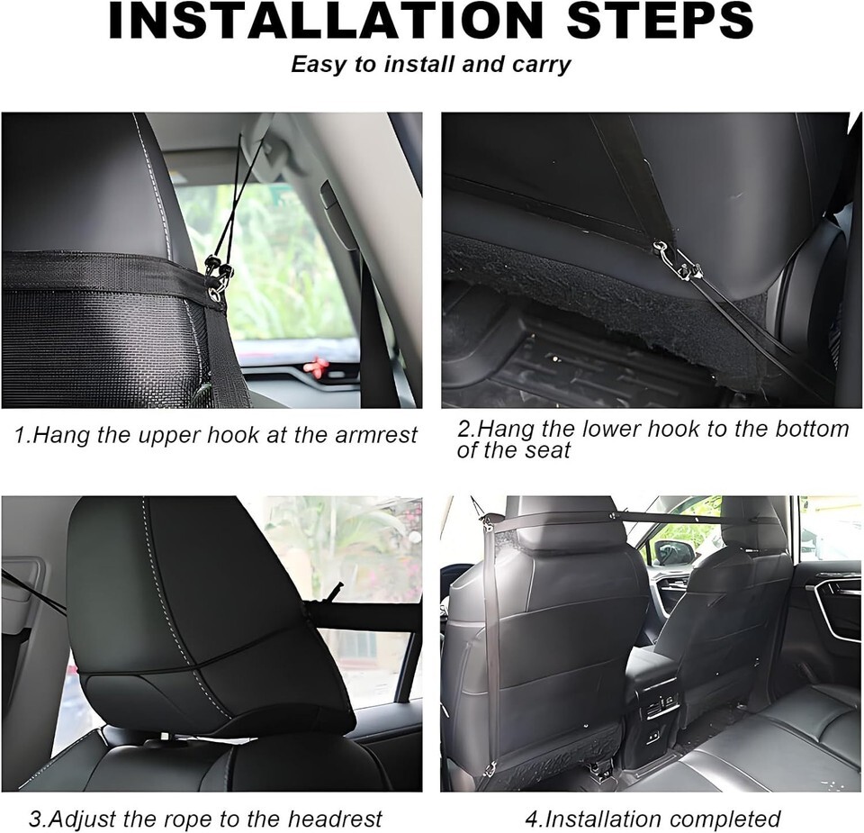 Complete Package: Comes with a car dog barrier net, 2 adjustable ropes, and 4 hooks for easy installation.