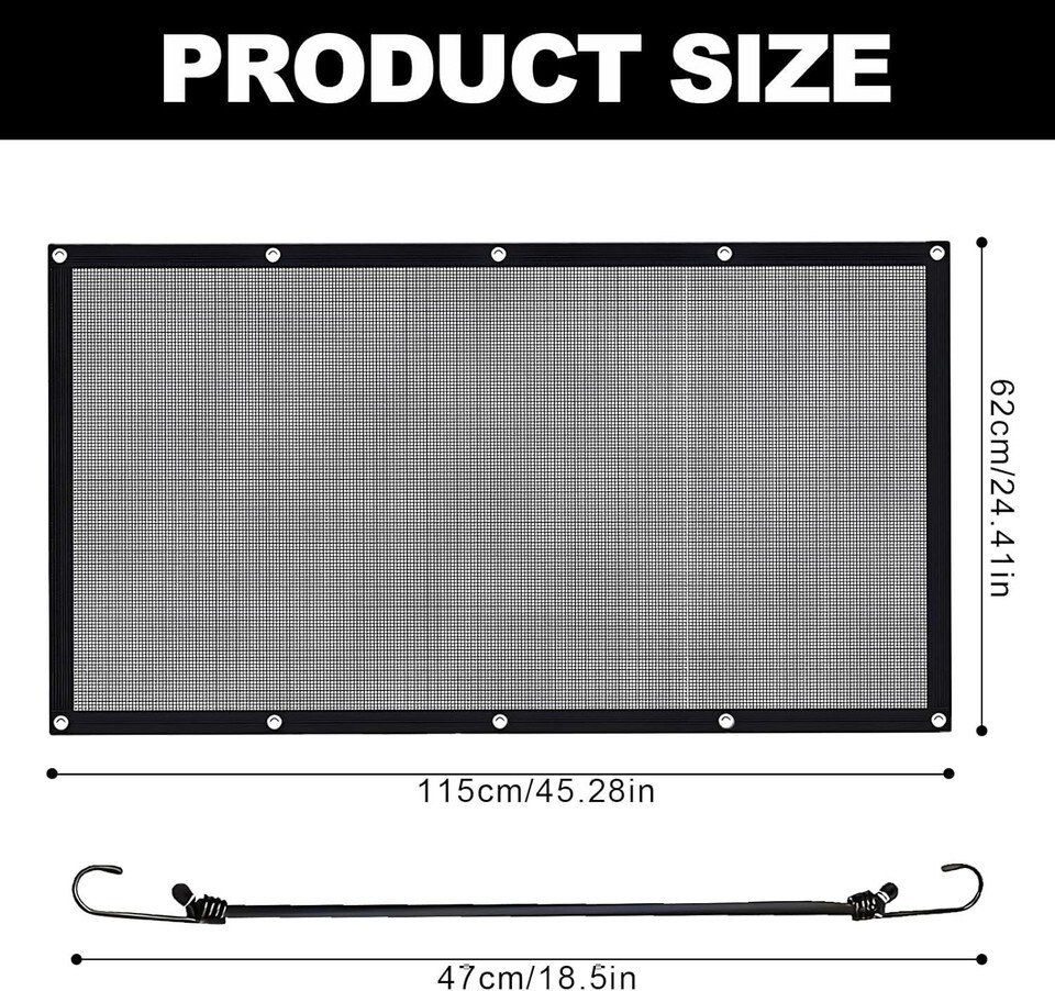 Versatile Fit: Measuring 115x62cm (45.28x24.41 inches), this flexible barrier fits most vehicles, trucks, and SUVs. Note: Please measure your vehicle to ensure a perfect fit.