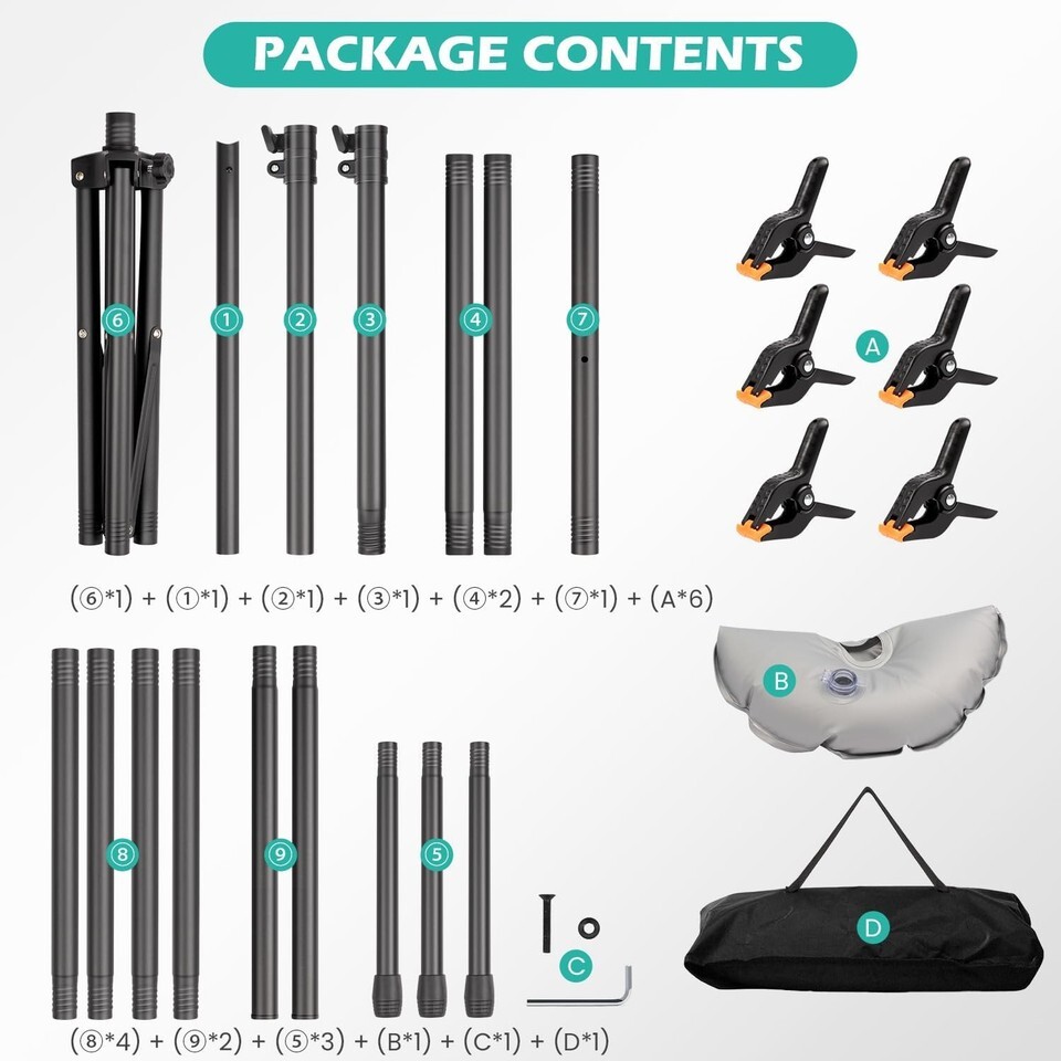 This backdrop with stand kit is suitable for portrait photo, party decoration, live streaming or video shooting. It can put fixing muslin, canvas, cotton and PVC background paper, which is an affordable alternative to professional filming screens.