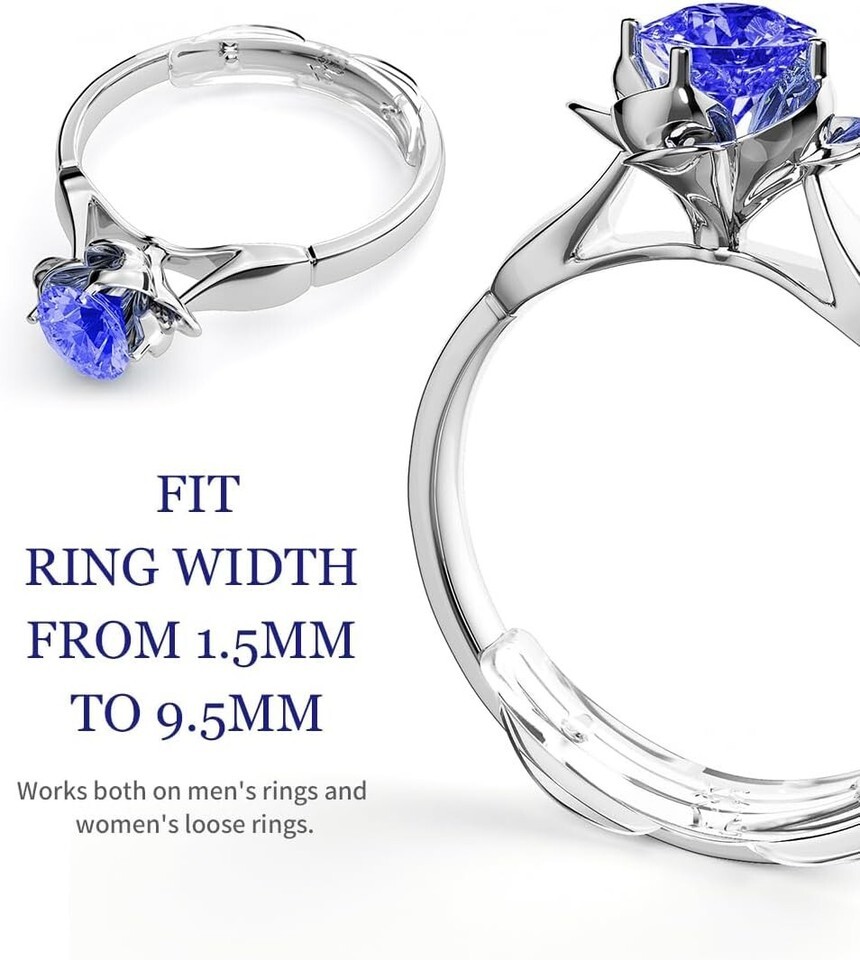 Simple to Use: The bottom of the adjuster is wider, allowing it to be pressed inside your ring, perfectly fitting rings from 1mm to 8mm in width.