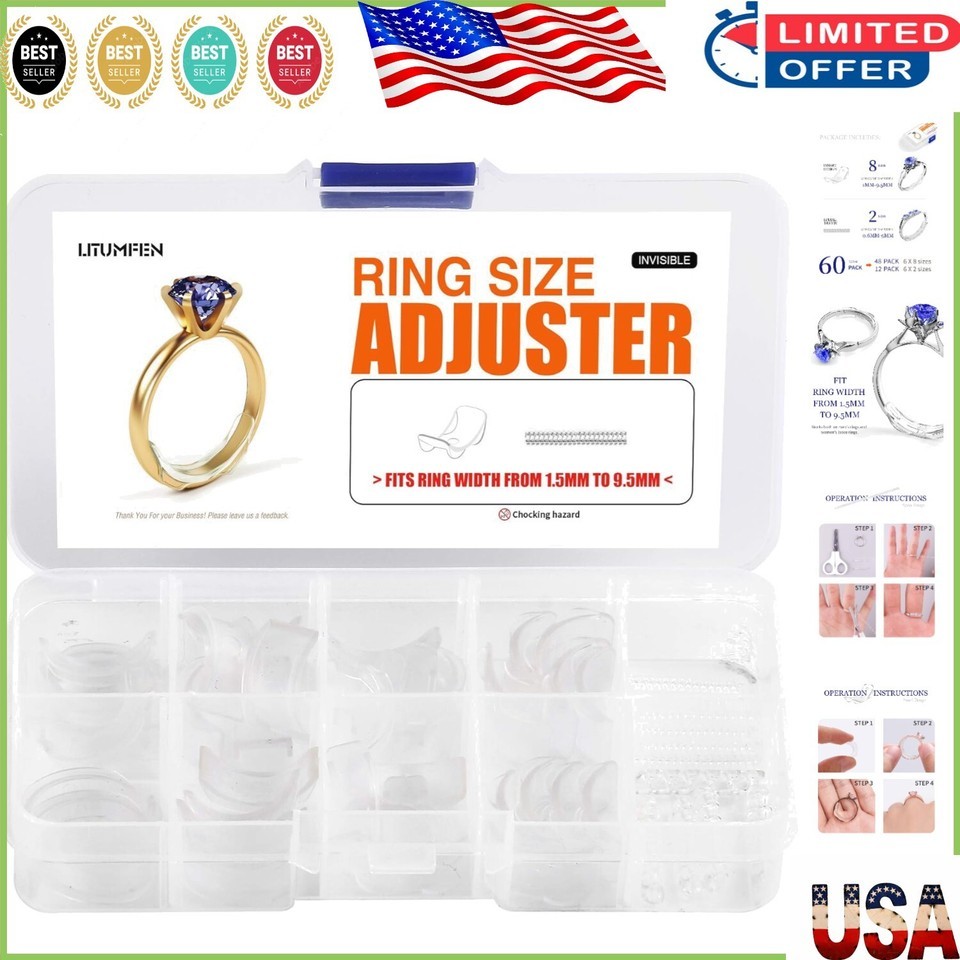 Adjustable Ring Size Adjusters - 60 Count, Fits Men Women Rings Elegantly