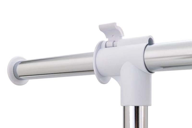 Adjustable Rolling Garment Rack Metal Chrome, White, 84-121Wx44Dx123.5-163Hcm