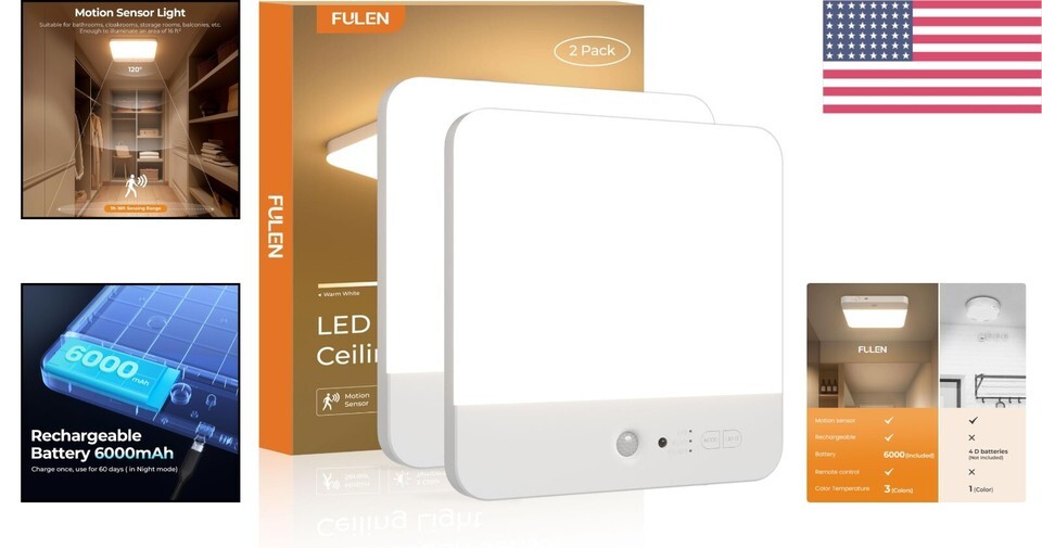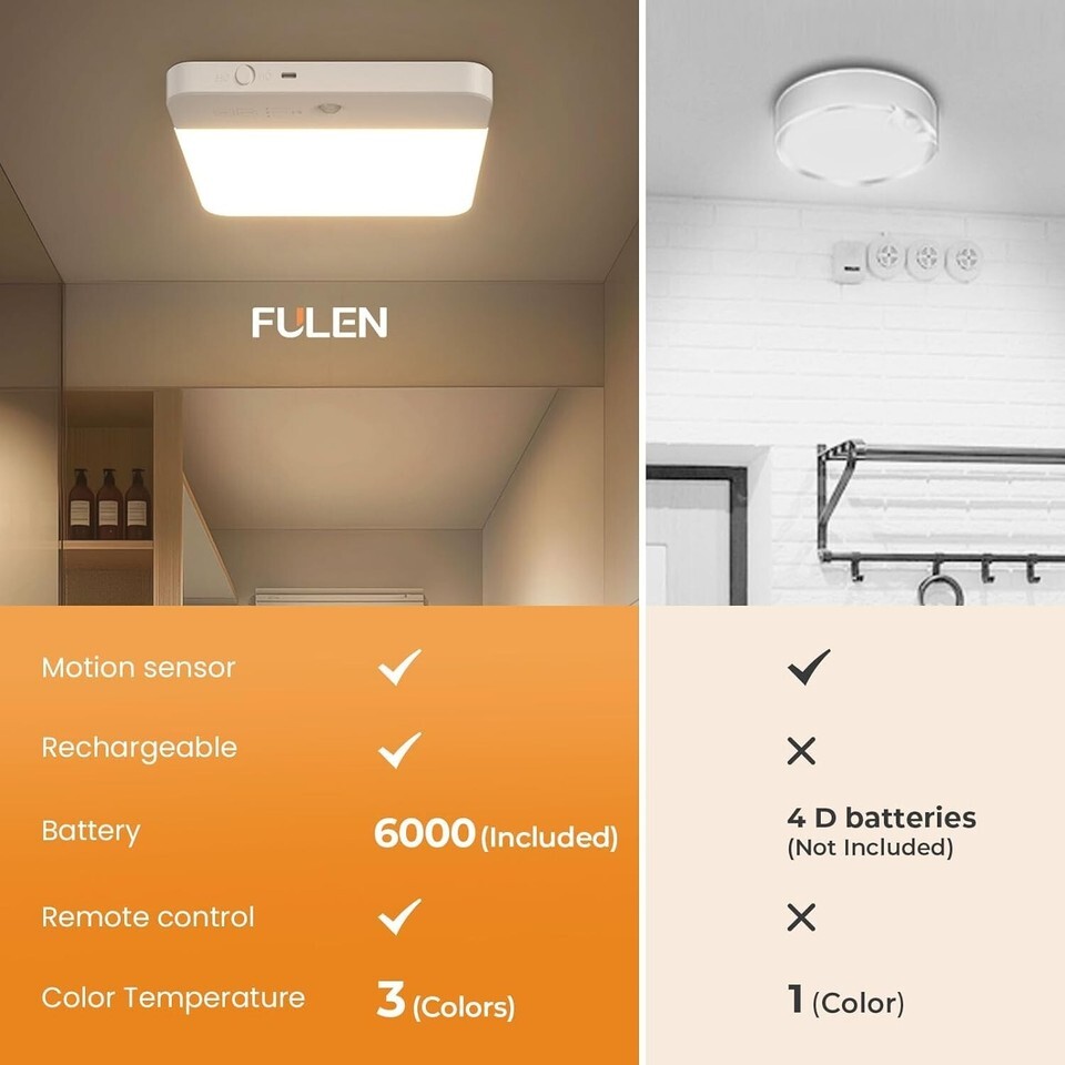 Upgraded Rechargeable Battery: No need for disposable batteries! Our ceiling light includes a robust 6000mAh battery, fully charged in just 5-6 hours. Enjoy over a month of use in motion sensing mode or up to 10 hours in steady mode.