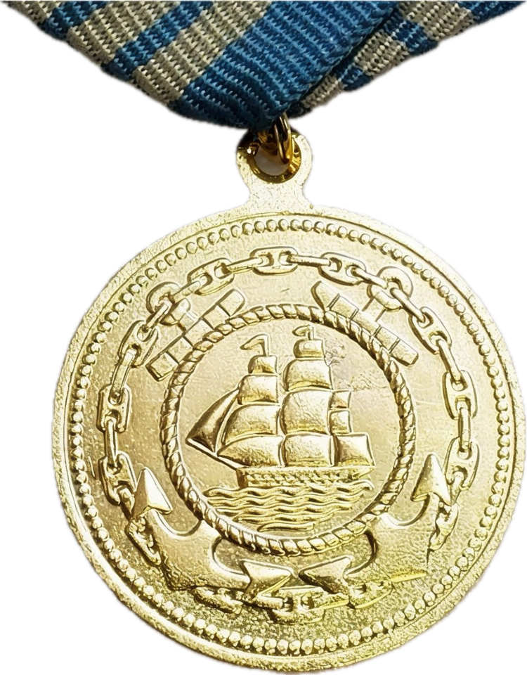 The reverse features a traditional sailing warship surrounded by a stylized rope and anchor border, representing naval strength and the heritage of the Black Sea Fleet. The medal is suspended from the iconic striped pentagonal mount, in colors that echo maritime service ribbons. While this medal is a modern recreation, it preserves the authentic design elements and historical iconography of one of the most distinguished awards, making it a valuable educational piece or collector?s item for those interested in 20th-century military history.