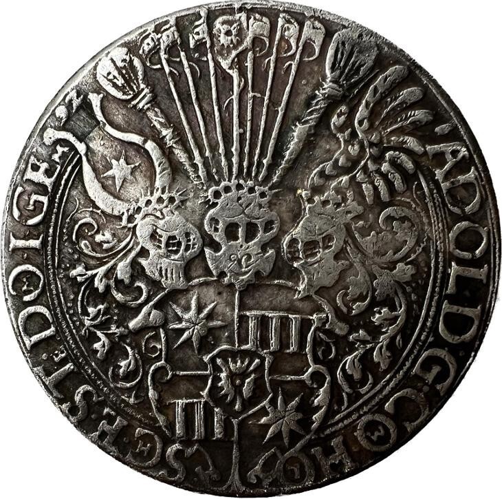Presentazione di Adolf XIII. Medaglia Fantasia Tre Regni - Masterful Copy Dicker Mint, una squisita replica della famosa moneta T?íreichstaler dell'epoca di Adolfo XIII, duca di Schleswig-Holstein. Questo straordinario pezzo, spesso indicato come "Dicker Mince", cattura la grandezza e il significato storico della sua controparte originale.