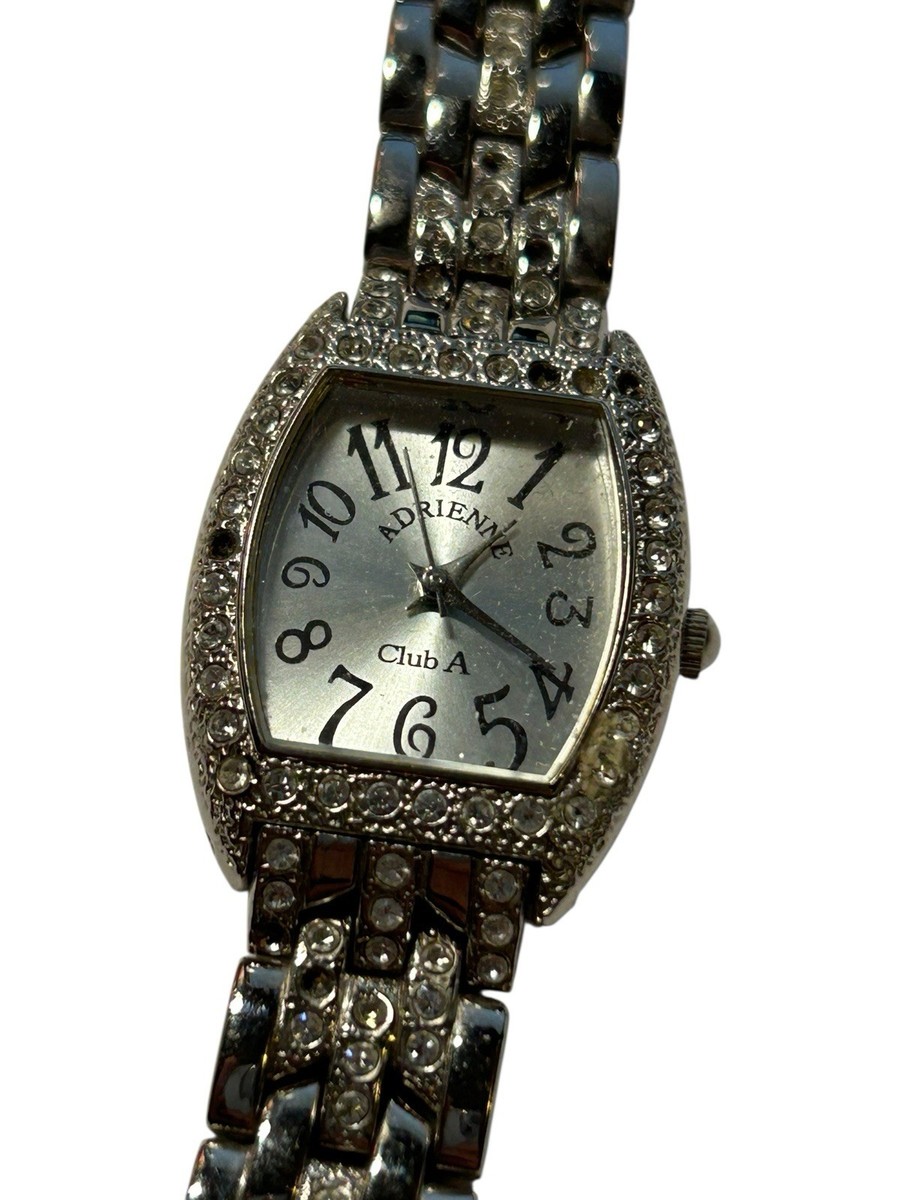 Adrienne Club A Watch Silver Stainless Steel Back Women?s Bling Base Metal Bezel needs a battery and will work perfectly.