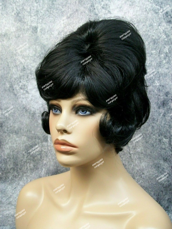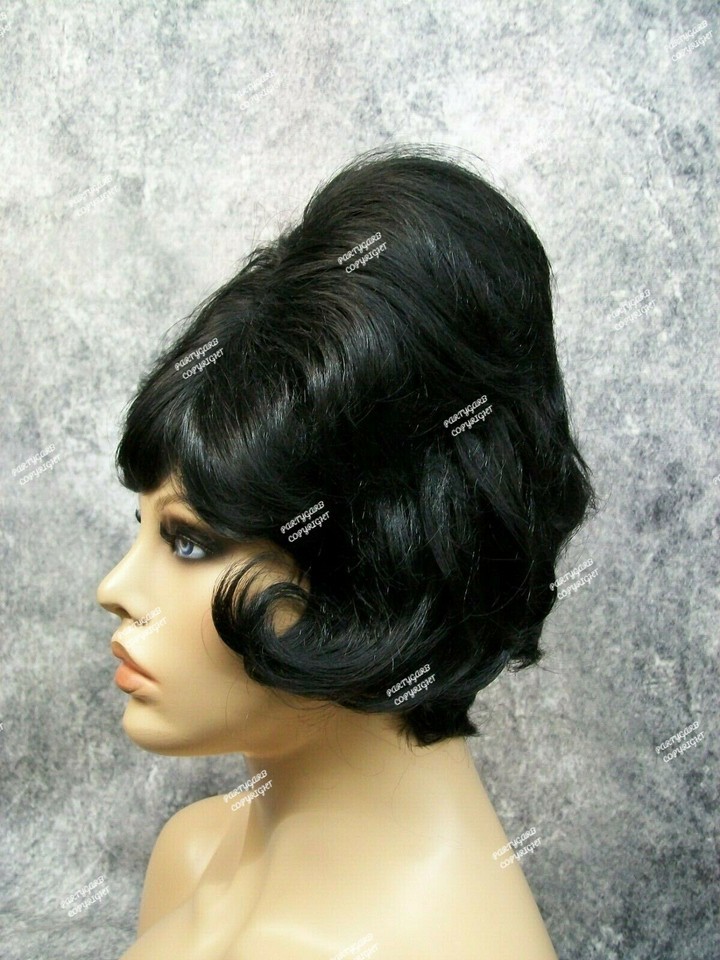 Retro 60's Beehive Costume Wig. Groovy Mod Look. Dome Cap. This wig may require stuffing of a lightweight material to maintain height. This wig can be styled and worn differently. Wig will require some styling and could be worn smoothed down or teased some for a fuller look if desired. I tried to show both ways in photos. Expect Shedding. For Adult Use. One Size Fits Most.