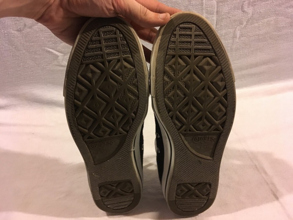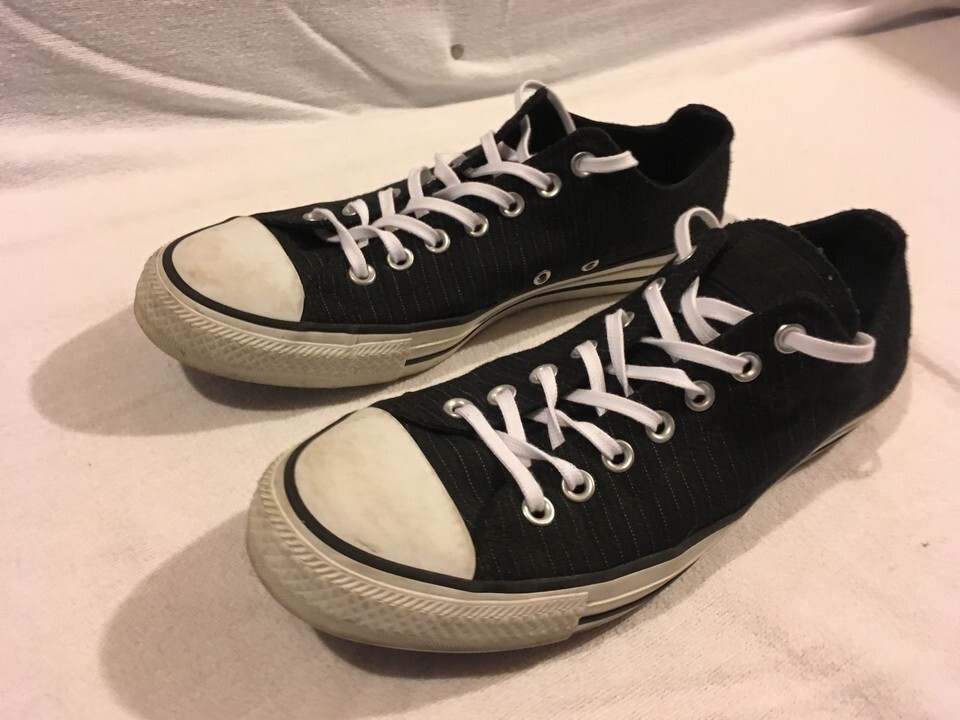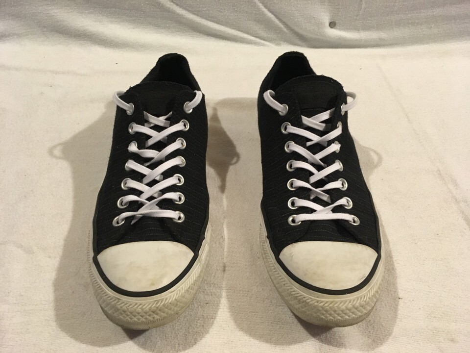 ITEM : Adult Converse All Star Canvas Black Gray Striped Mens 9 Womens 11 Shoes SIZE: Mens - 9 Womens - 11 COLOR : Black Gray DEFECTS : Minor Wear On Soles ~ See Photos WE SEND TO INTERNATIONAL BUYERS IF THE ITEM QUALIFIES. ALL MY STORE ITEMS CAN BE SENT INTERNATIONALLY THRU THE GLOBAL SHIPPING PROGRAM . BUYERS ARE RESPONSIBLE FOR ALL TAXES, AND ADDITIONAL COUNTRY REGULATED FEES. WE WILL SEND TO THE SHIPPING CENTER IN KENTUCKY AND WILL SEND IT TO YOUR ADDRESS IN YOUR COUNTRY EXCEPT RESTRICTED COUNTRIES, INTERNATIONAL BUYERS CANNOT BUY ANY MILITARY ITEMS IN MY STORE OR ANY RESTRICTED ITEMS THAT DEEMS RESTRICTED. THE GLOBAL SHIPPING PROGRAM IS A PROGRAM FOR INTERNATIONAL BUYERS TO PURCHASE FROM UNITED STATES SELLERS LIKE MYSELF, YOU SIMPLY CALL AND ENROLL. Thank You for looking at my Store. I am a United States Army Veteran and our Store is Veteran Owned and we count on an honest transaction. We have a no hassle return Policy. It?s really simple if you don?t like it please return the item and I will issue you a refund. I have quickly learned that Customer Satisfaction is the number one Priority. My Store is open for Business and I invite everyone to take a quick look at what I have...Just click here and see all that I have We now ship every day to include SATURDAY AND SUNDAY? which means our carrier service now picks up 7 Days a week. If you BUY TODAY? your ITEM will get out no later than 72 hours after your purchase. It will have the best head start as it will be processed at the Denver Hub within 72 Hours of your purchase. Even if you buy at night your Item will be processed the next two mornings and will be at the Denver Hub WITHIN 72 HOURS. We have Incredible FAST SHIPPING and again WE NOW SHIP ON SATURDAY AND SUNDAY. If you have any questions please MESSAGE ME... If you have any CONCERNS please MESSAGE ME. If you have any ISSUES with your Item please let me fix it. I count on your Business and in return I will give you an Honest Auction. I look forward to doing Business with you. View more great items