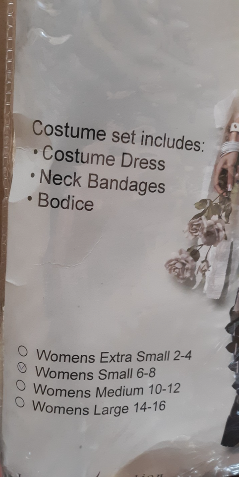 NOTE: Listing is for items listed as included only. Some accessories may be pictured but are not included. All are new in package. Costumes may have some wrinkles or creases from being folded or in package, please see care instructions before trying to iron, etc. A quick and easy way to help eliminate wrinkles is by using a spray bottle form of fabric wrinkle releaser (not included). New in package items may have long / loose threads or strings that may require trimming, these are not considered defects. For Costumes, please refer to chart in this listing as reference for estimating size, always choose a size larger if borderline. Individual results will vary. Please note everyone's body is made different and costumes may not fit as they fit the models in the photos. If you are unsure of the size you need or if your in between sizes, please choose the larger size. These are costumes and should fit comfortably. All sizing information is provided by manufacturer in U.S. sizes. International buyers please know size conversions for your country. International buyers purchase sized items at their own risk. Some Features, Packaging, Colors and Texture may vary slightly. Manufacturer may change some Features, Packaging, Colors and Textures so actual costume may vary slightly from picture. Any known differences will be stated in description. Manufacturer's Photo and Actual Photos - Alternate Views. No Returns or Exchanges on Costumes. As is New in Package. Exact colors cannot be guaranteed. Monitors and screens display colors differently, please keep this in mind. I have no way of knowing what you are seeing. Ships in a polymailer. Hanger will be removed for shipping purposes.