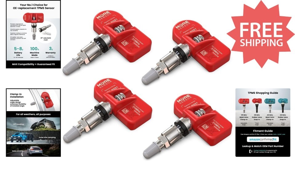 - Advanced 315MHz TPMS Sensors 4-Pack by MORESENSOR - Fits Popular American Brands