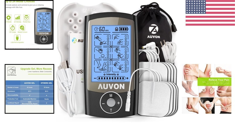 - Advanced 4th Gen TENS Pain Relief Device - 24 Modes, 8 Pads, Rechargeable Design