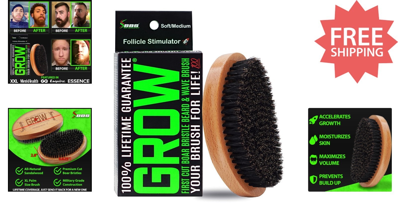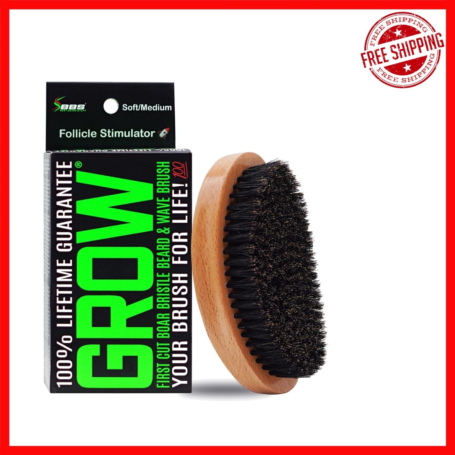 - Advanced GROW Boar Bristle Beard Brush - Exfoliate, Moisturize, and Stimulate