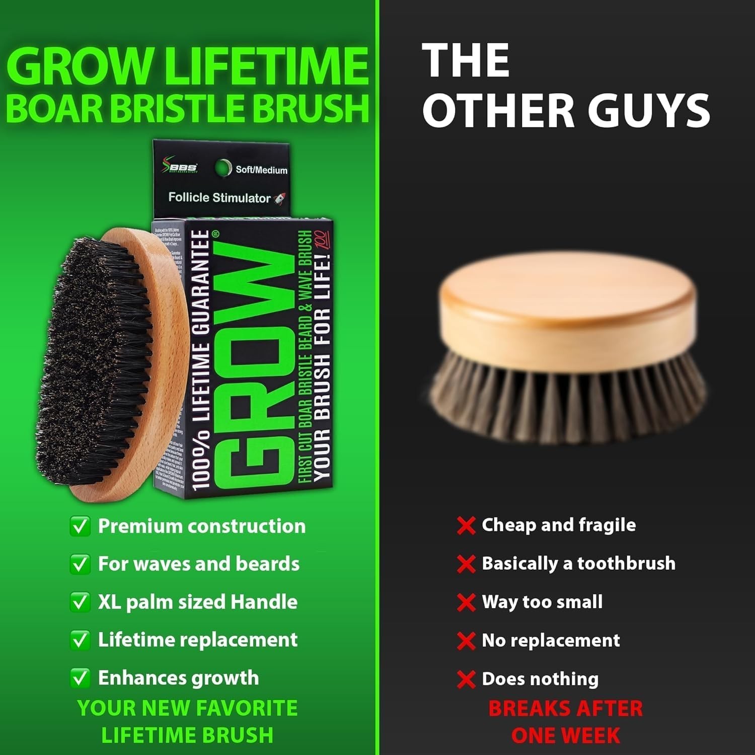 Experience superior beard and wave care with our all-natural boar bristle grooming tools. Specifically designed for men, our beard brush encourages healthy beard growth by evenly distributing oils and nutrients directly to your follicles, while our medium wave brush helps keep your waves crisp and scalp exfoliated. Crafted with high-quality, first-cut boar bristles and a ergonomic wooden design, these brushes stimulate blood flow, open pores, and promote stronger, healthier hair growth. Backed by a , our grooming sets ensure lasting quality and performance. To ensure fast and reliable delivery, we work with multiple fulfillment partners and suppliers. Depending on availability and location, your order may ship from different warehouses or arrive in packaging that varies from item to item. Tracking details are typically provided shortly after shipment, and customer satisfaction remains our top priority. Please note that due to carrier policies and regional regulations, certain items may not be eligible for delivery to specific states or territories.