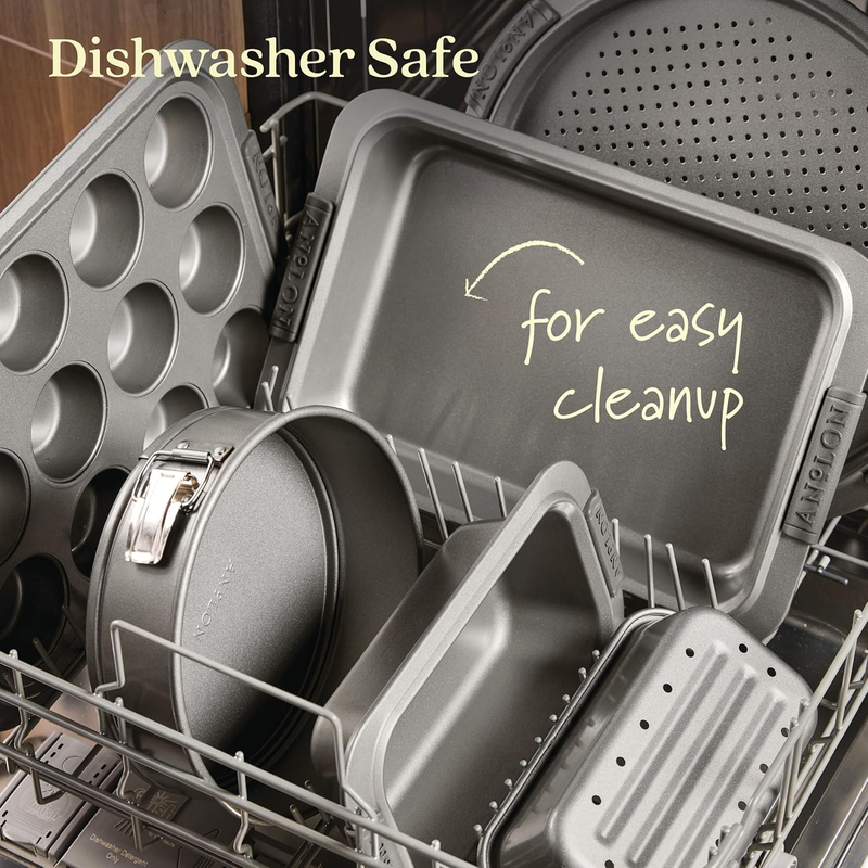 Welcome to exceptional bakeware for dedicated bakers. Designed to deliver great baking results with both ease and efficiency, this Anolon Advanced Nonstick Loaf Pan Set measures up to the high standards of dedicated bakers and meatloaf lovers alike. Versatile, dishwasher safe loaf pans are ideal for baking meatloaf, zucchini bread, banana bread, or coffee cake. Oven safe to 450F, this nonstick pan is crafted from heavy gauge steel to resist warping and features a medium color tone to promote even browning and provide the even heat distribution necessary to successful baking and roasting.