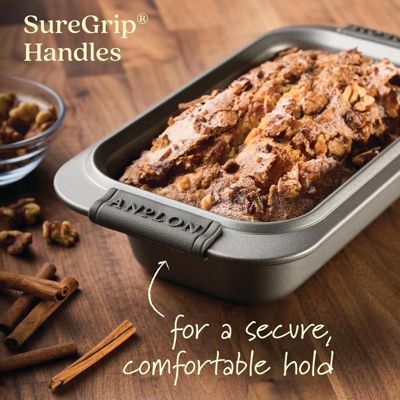 DURABLE CONSTRUCTION: This loaf pan?s wide rim and rubberized handles provide solid grip and a comfortable grasp