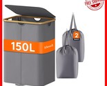 - Aesthetic 150L Laundry Basket with Bamboo Handles - Perfect for Dorms