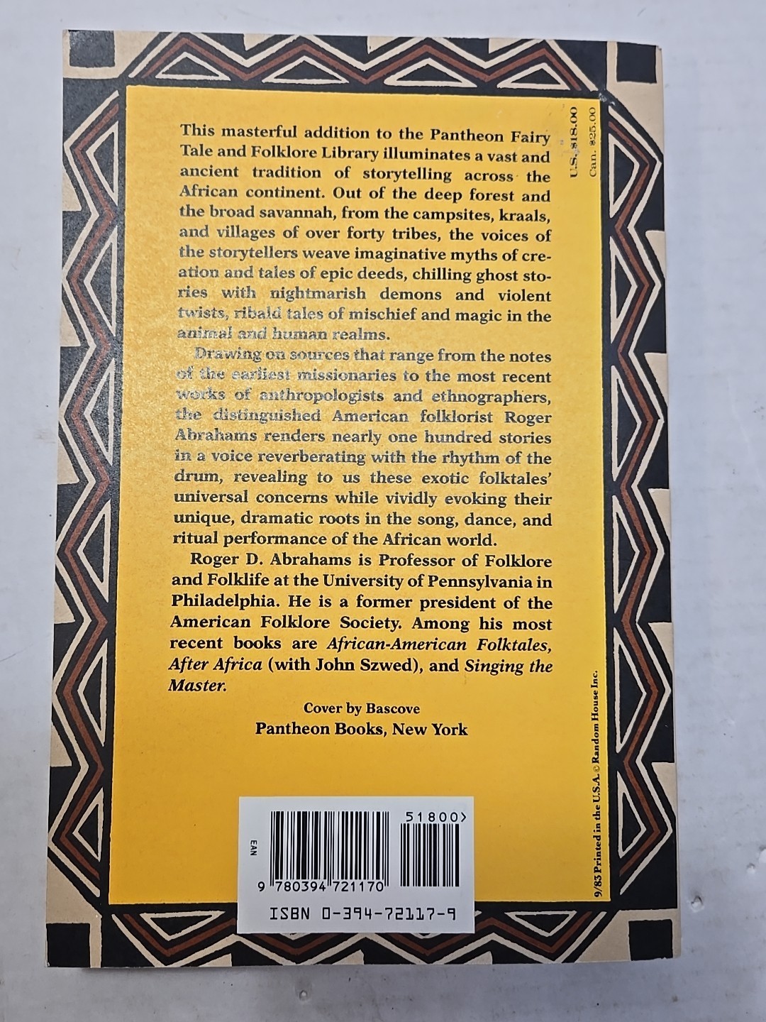 "African Folktales" by Roger Abrahams is a collection of traditional stories from Africa, presented in English and illustrated by the author. This trade paperback edition, part of "The Pantheon Fairy Tale and Folklore Library" series, includes 384 pages of fantasy, fairy tales, folk tales, legends, and mythology. Published in 1983 by Knopf Doubleday Publishing Group, this literary work offers readers a glimpse into the rich storytelling traditions of Africa, making it a valuable addition to any collection of folklore and fantasy literature.