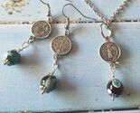 Agate jewelry set earrings and necklace . Silver tone jewelry set earrings and necklace . Green-blue-black agate earrings and necklace . Ibiza style jewelry . Gypsy style coins pendant silver-tone jewelry set . Antique style jewelry set earrings and necklace.