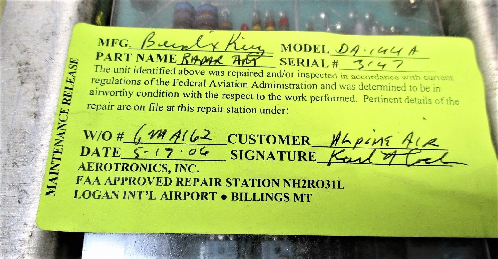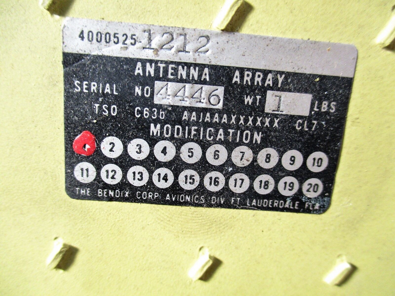 This item was purchased from an aviation surplus sale. We do not know the history of it. It is in good cosmetic condition. It has a maintenance release tag (see picture number 2). It is not tagged as to the aircraft type. It has a Bendix antenna array P/N 4000525-1212. We are not able to test it. It only comes with what is shown in the pictures.