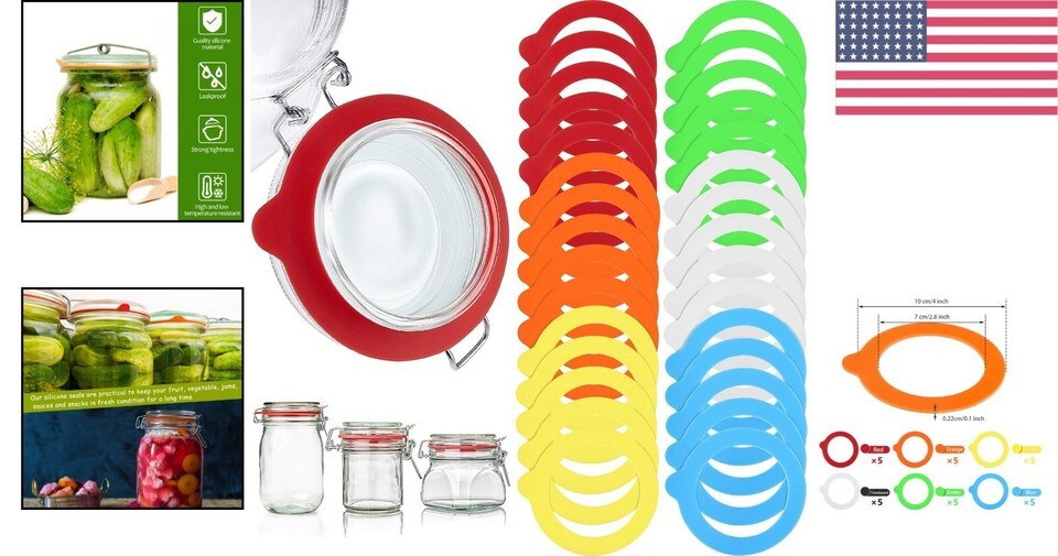 - Airtight Silicone Sealing Rings - 30 Colorful Gaskets for Jars & DIY Projects