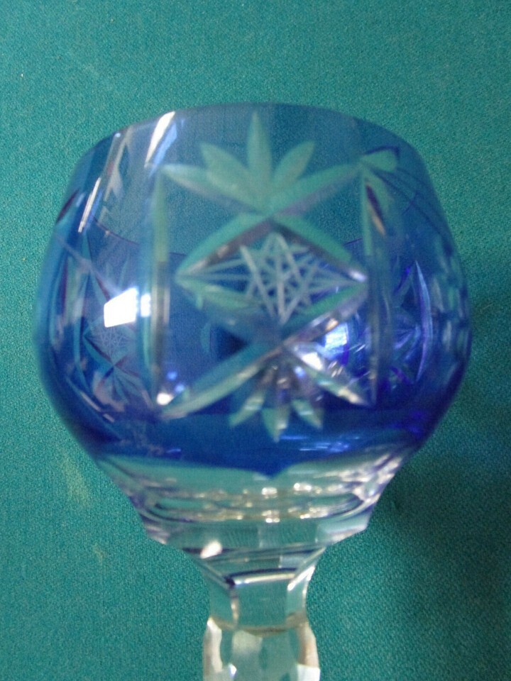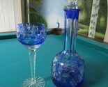 - Ajka Marsala Bohemia Blue Crystal Cut To Clear Decanter With Goblet