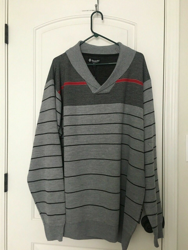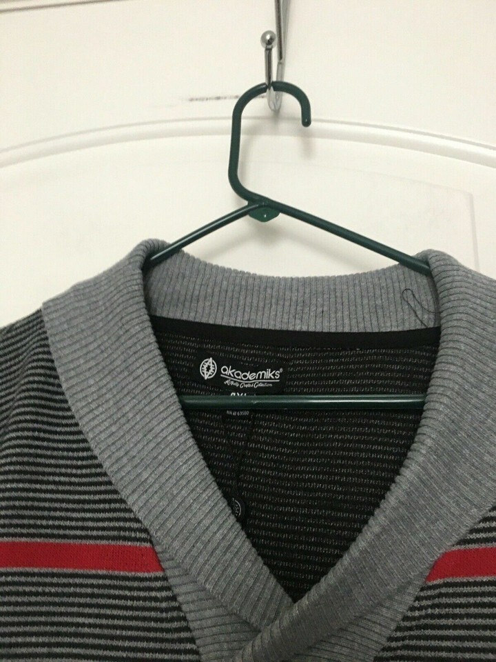 - Akademiks Men's Big & Tall Striped Cardigan Sweater Size 4XL Gray Black Red