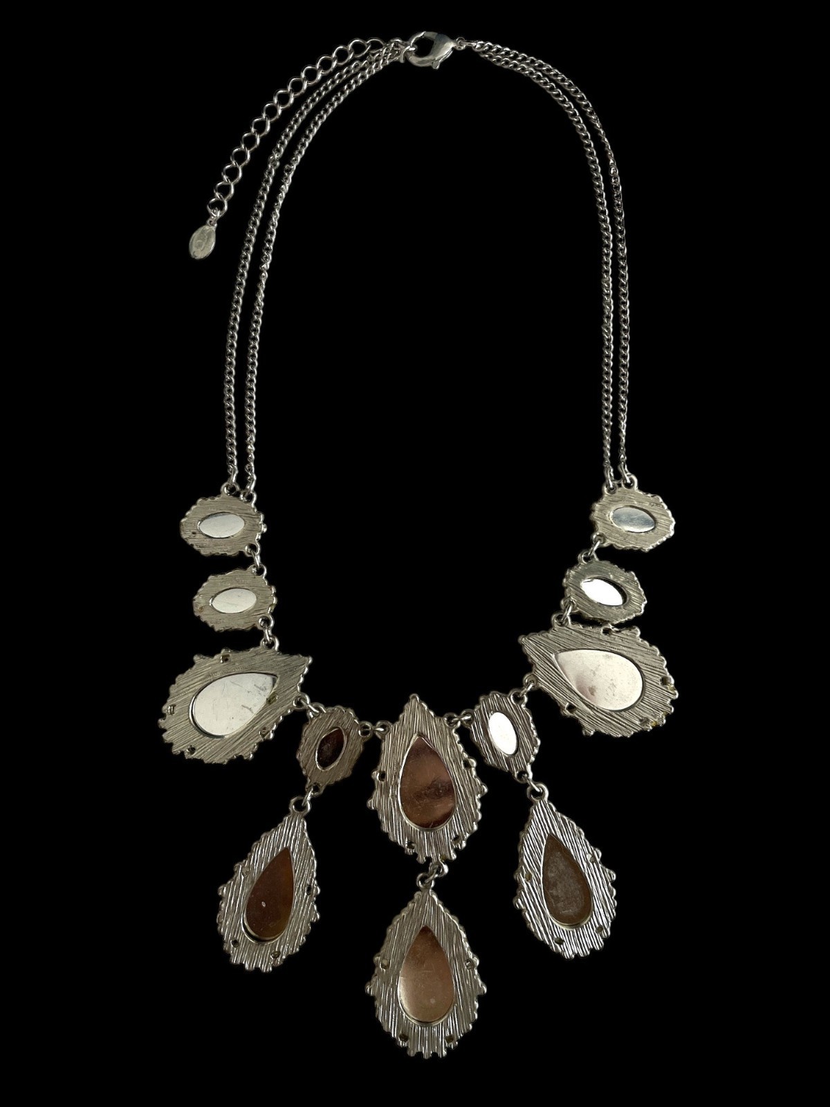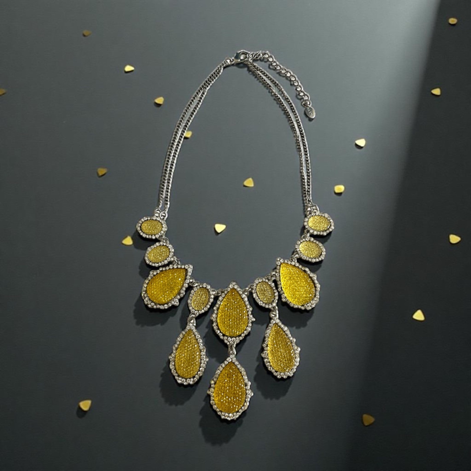 - Aldo Statement Necklace with Yellow Beaded Teardrop Pendants and Rhinestone Trim