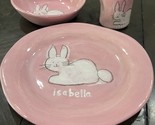 - Alex Marshall Studios "Isabella" Bunny Childs 3 Piece Dish Set Pink Bowl Cup