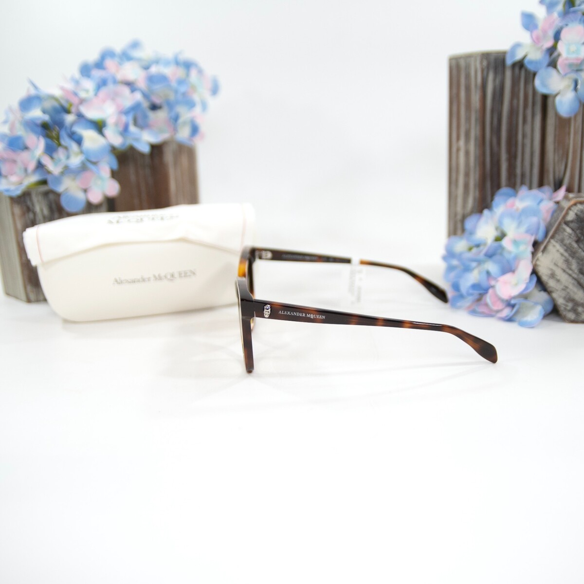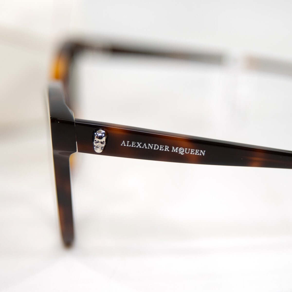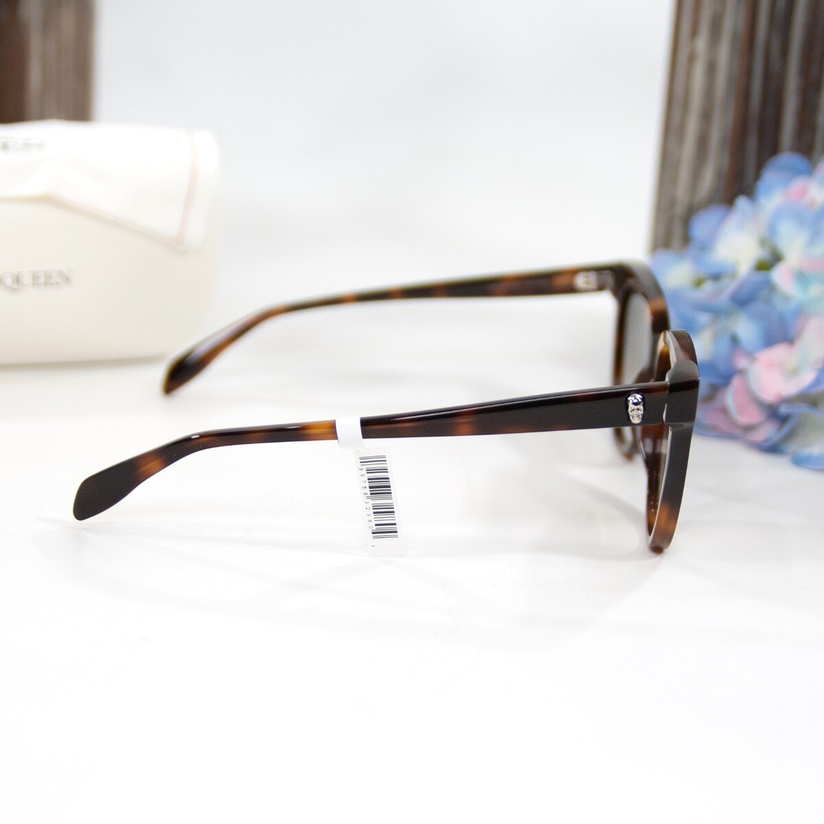 - Alexander McQueen 3D Skull Tortoise Logo Havana Acrylic Sunglasses NWT Case