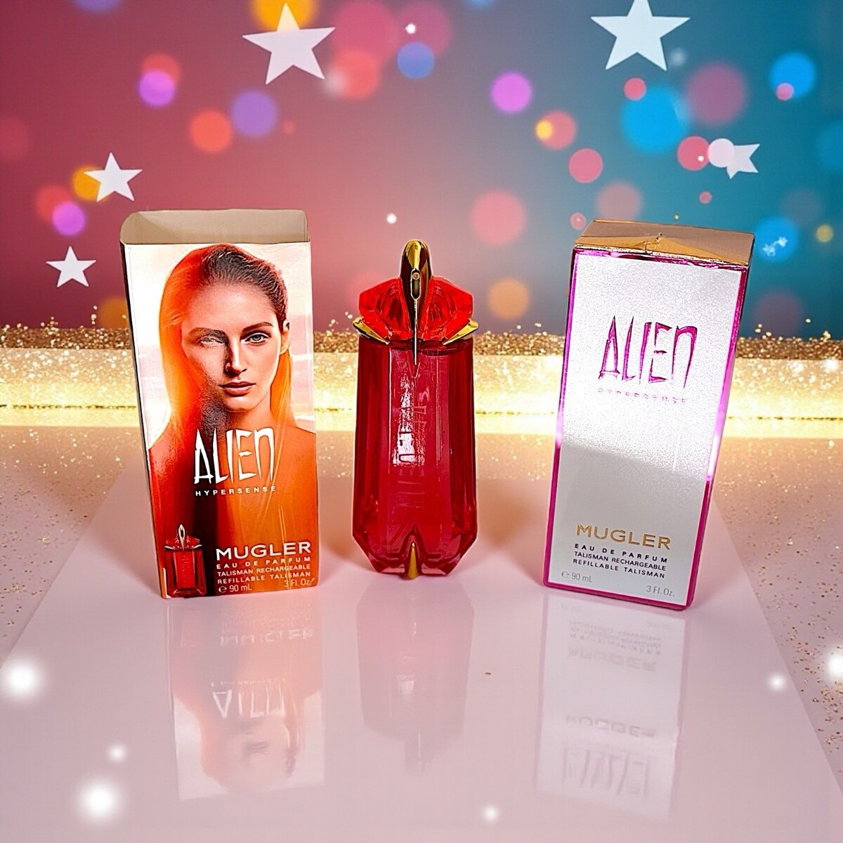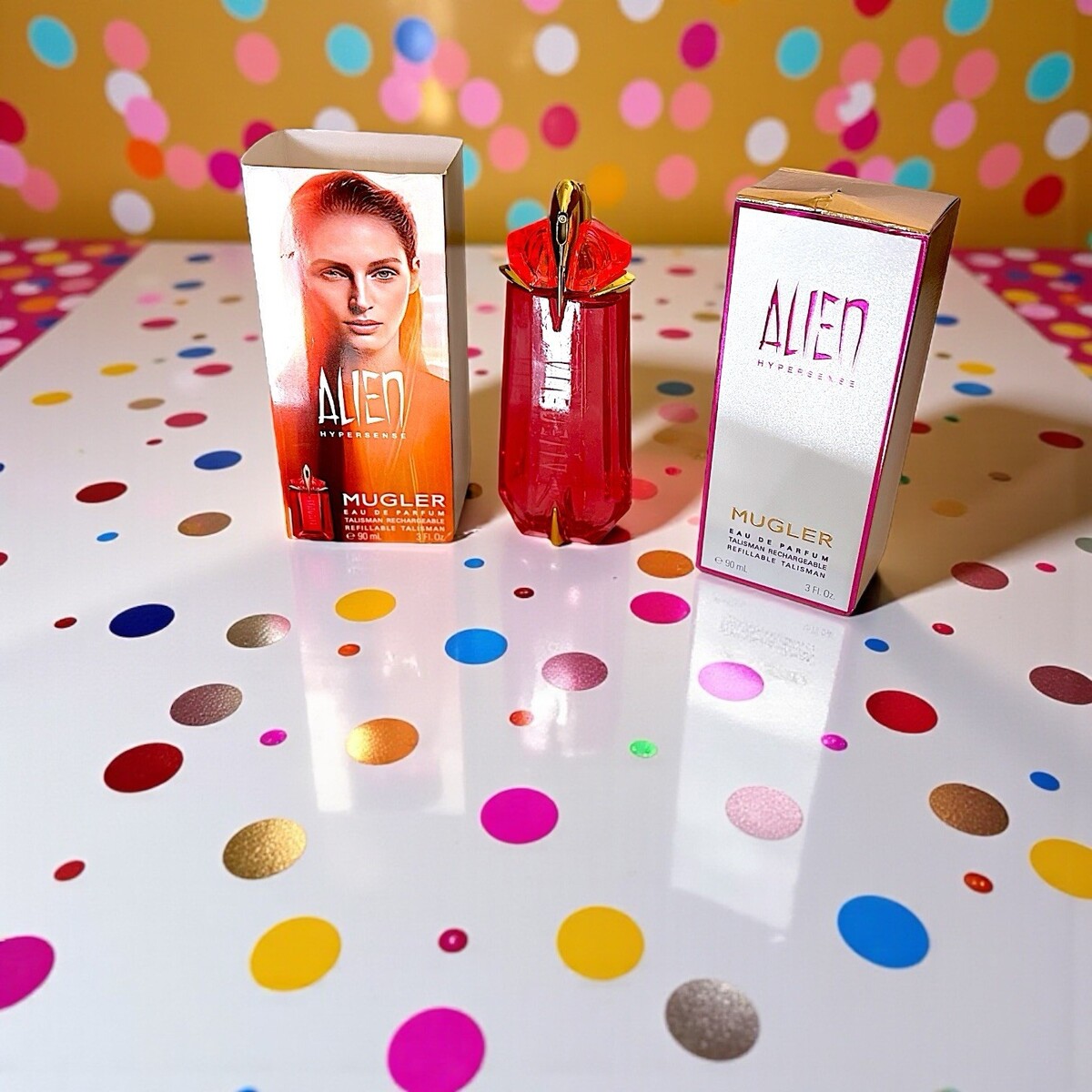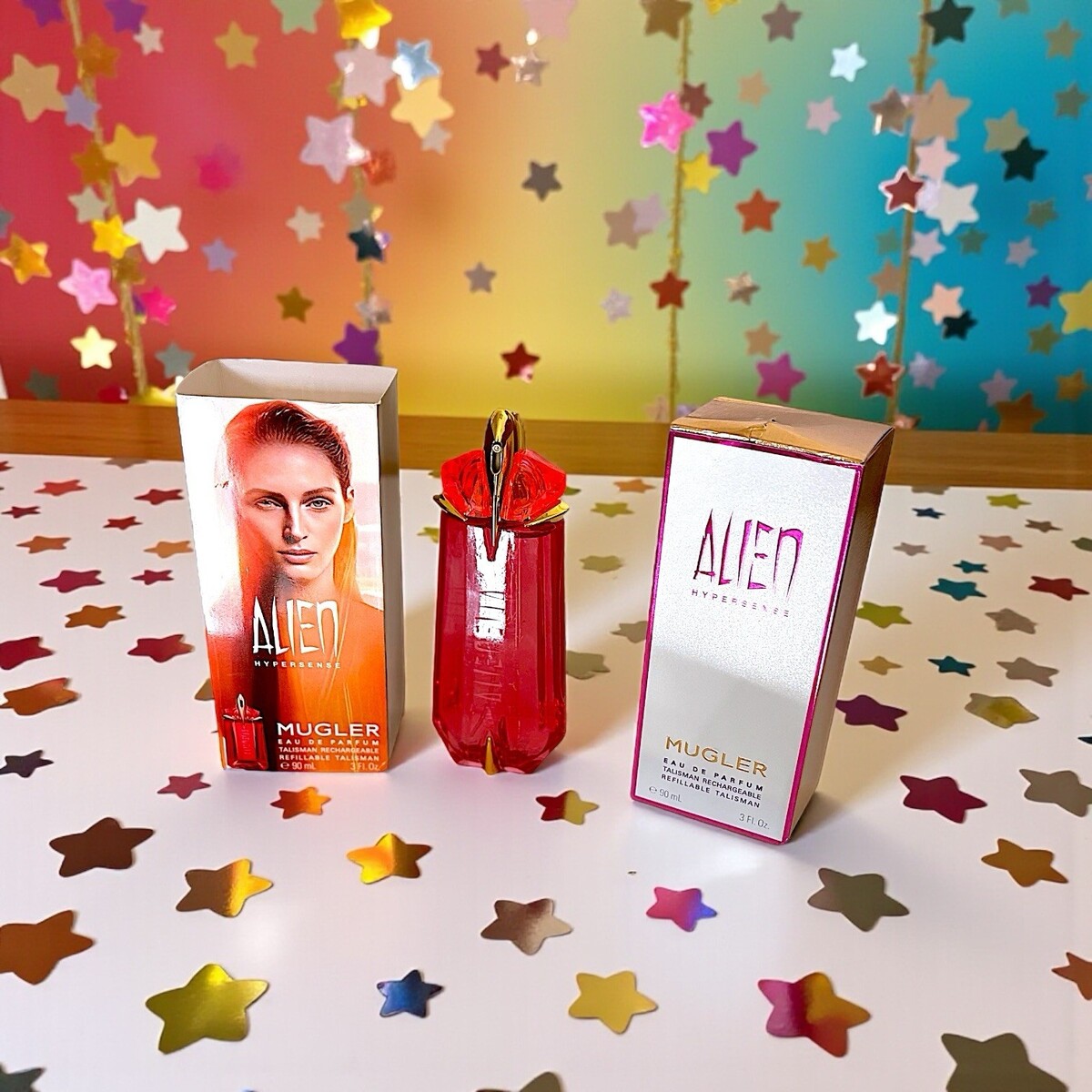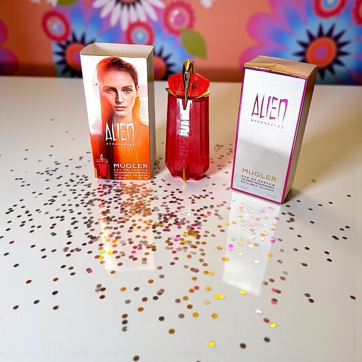 Alien Hypersense by Thierry Mugler for Women ? 3 oz / 90 mL Eau de Parfum Spray (Refillable) EAN: 3614274066999? MPN: LE5974? ASIN: B0CS7MBM1W Awakening. Overblooming. Electrifying. Alien Hypersense captures a radical rebirth of Thierry Mugler?s iconic Alien fragrance. This floral ambery woody scent blends green mandarin, juicy pear, and jasmine sambac with warm woody cashmeran for an energizing, luminous twist. Product Details: ? Brand: Thierry Mugler ? Size: 3 oz / 90 mL ? Type: Eau de Parfum Spray (Refillable) ? Category: Women?s Fragrance ? Notes: Green Mandarin, Pear Accord, Jasmine Sambac, Cashmeran ? Launch Year: 2024 Bottle Design: Unlike the original Alien?s signature deep purple bottle, Alien Hypersense comes in a striking neon red/coral glass ? symbolizing the ?electrifying energy? of this new interpretation. This is the authentic 2024 design as produced by Mugler, not a variation or misprint. Condition: Box is slightly damaged from transit. To ensure the product itself was unharmed, I carefully opened and resealed the outer package after inspection. The bottle inside remains brand new, unused, and in perfect condition. Retail Value: $180+ depending on retailer. Listing Includes: 1 Alien Hypersense Eau de Parfum 3 oz (Refillable Bottle) ? Dare to awaken your senses with Alien Hypersense ? an unfiltered, hypnotic fragrance that celebrates instinct and individuality. ?