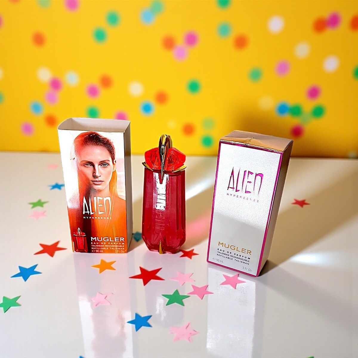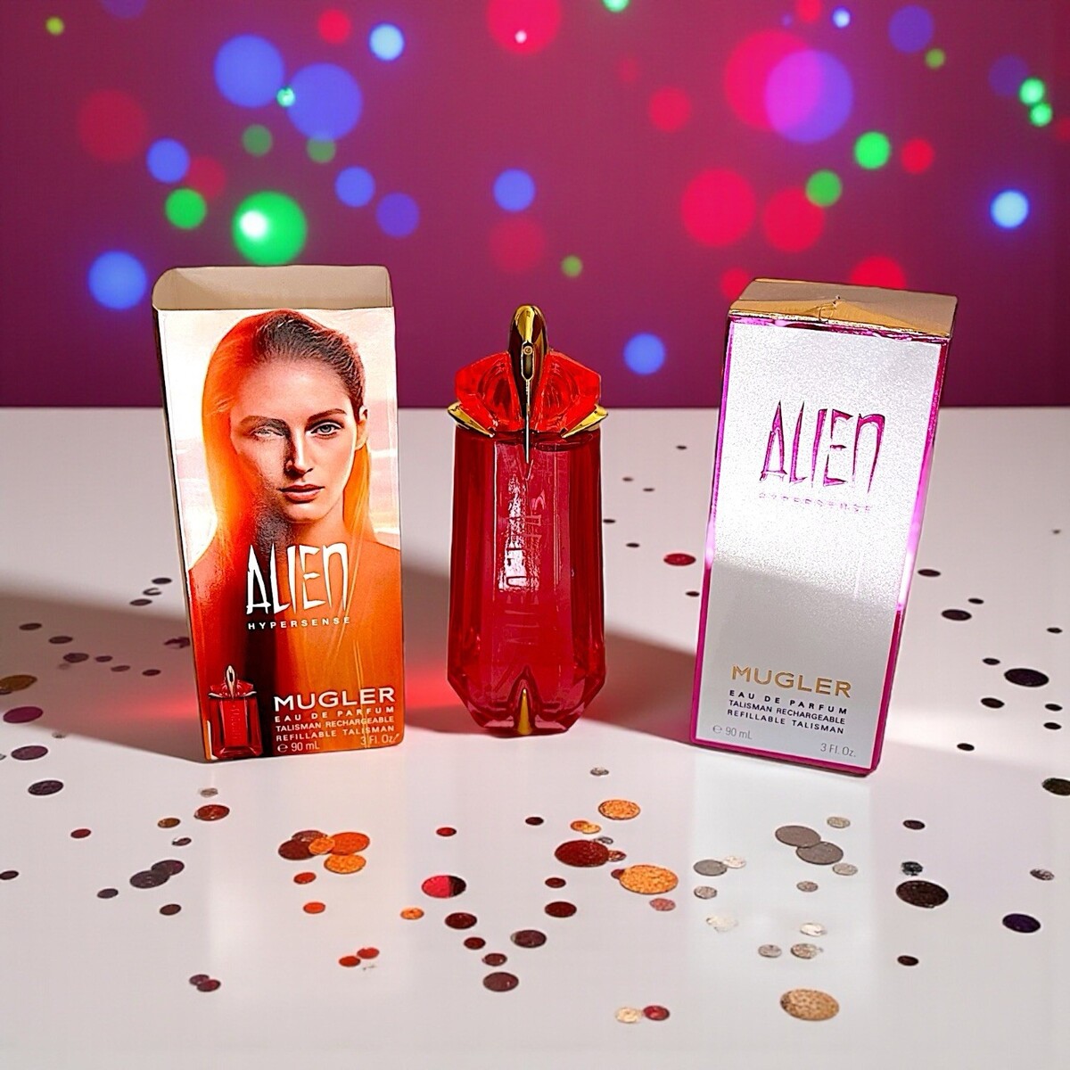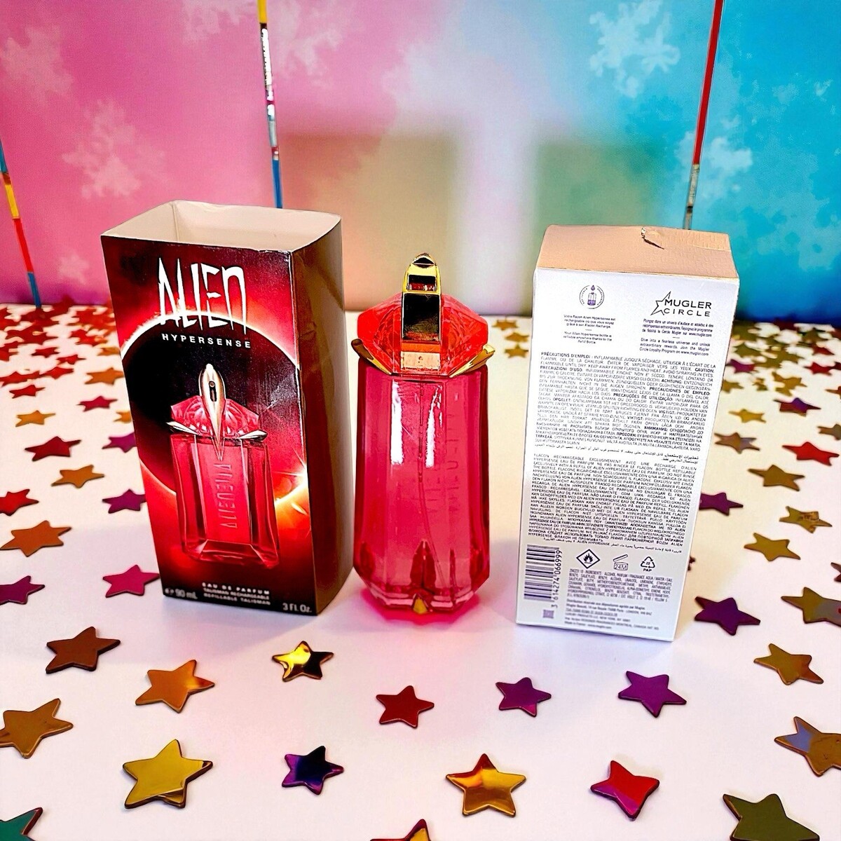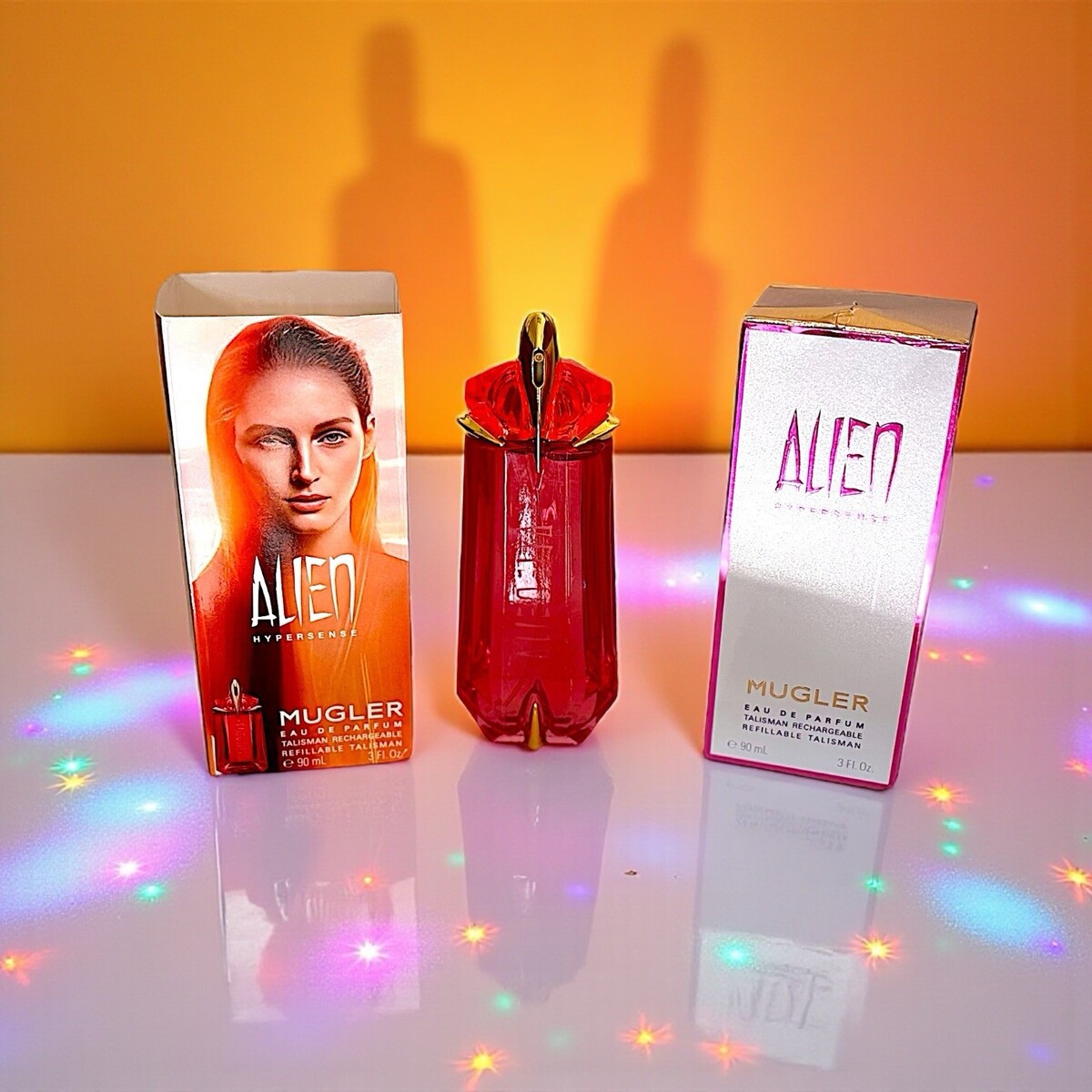 Alien Hypersense by Thierry Mugler for Women ? 3 oz / 90 mL Eau de Parfum Spray (Refillable) EAN: 3614274066999? MPN: LE5974? ASIN: B0CS7MBM1W Awakening. Overblooming. Electrifying. Alien Hypersense captures a radical rebirth of Thierry Mugler?s iconic Alien fragrance. This floral ambery woody scent blends green mandarin, juicy pear, and jasmine sambac with warm woody cashmeran for an energizing, luminous twist. Product Details: ? Brand: Thierry Mugler ? Size: 3 oz / 90 mL ? Type: Eau de Parfum Spray (Refillable) ? Category: Women?s Fragrance ? Notes: Green Mandarin, Pear Accord, Jasmine Sambac, Cashmeran ? Launch Year: 2024 Bottle Design: Unlike the original Alien?s signature deep purple bottle, Alien Hypersense comes in a striking neon red/coral glass ? symbolizing the ?electrifying energy? of this new interpretation. This is the authentic 2024 design as produced by Mugler, not a variation or misprint. Condition: Box is slightly damaged from transit. To ensure the product itself was unharmed, I carefully opened and resealed the outer package after inspection. The bottle inside remains brand new, unused, and in perfect condition. Retail Value: $180+ depending on retailer. Listing Includes: 1 Alien Hypersense Eau de Parfum 3 oz (Refillable Bottle) ? Dare to awaken your senses with Alien Hypersense ? an unfiltered, hypnotic fragrance that celebrates instinct and individuality. ?