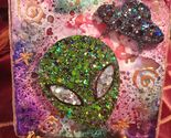 Aliens remain popular decor items and ours is completely unique. Mixed media at its best.