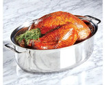 This generously sized roaster is ideal for cooking large portions ? from meat and poultry to meals for a crowd. High sides reduce splattering while the stainless-steel rack elevates food to promote fast, even cooking. It comes with a tight-fitting domed lid that locks in heat and moisture for tender, juicy results.