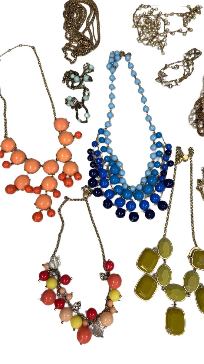 - All J.Crew 12 PC Statement Brulee Necklace Lot Colorful Bass Chains Crystals