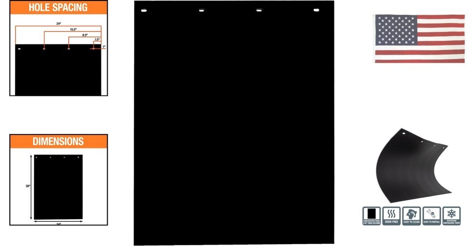 - All-Season 24x30 Inch Polymer Mudflaps - Universal Fit for Trucks & Trailers
