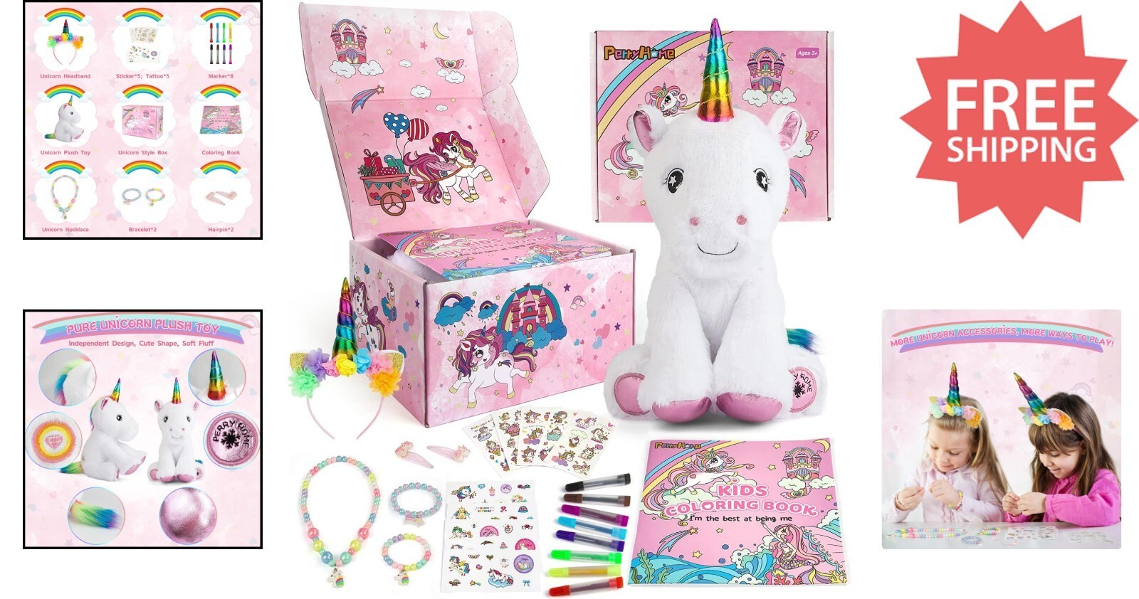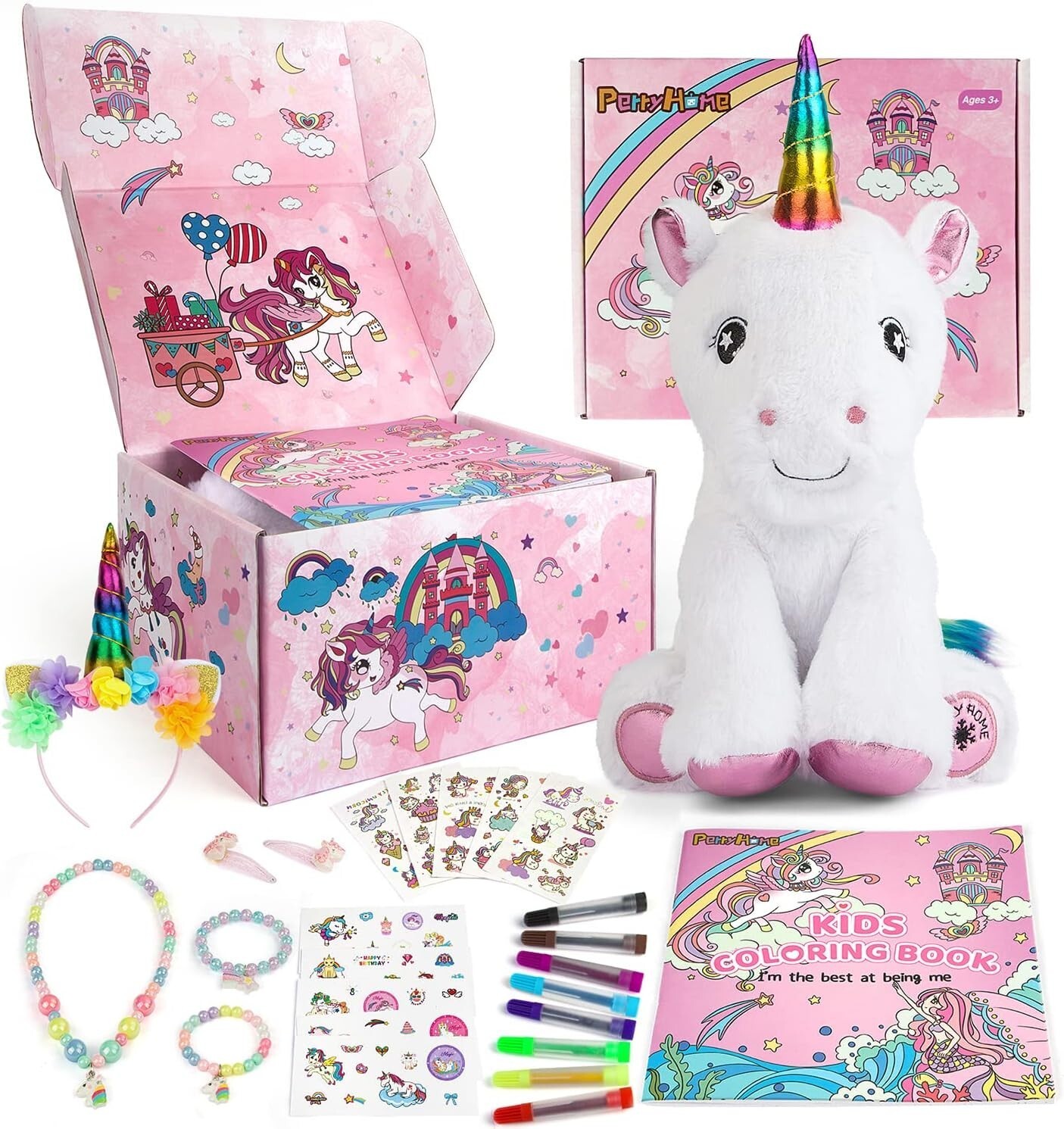 Discover the enchanting 26-in-1 Unicorn Toy Set for Girls by PERRYHOME, featuring a plush unicorn stuffed animal, a charming coloring book with markers, stickers, and DIY ornaments including necklaces, bracelets, hairpins, and a headband. Perfect for inspiring creativity and imagination, this set includes fairy-tale themed coloring pages, unicorn jewelry making, and adorable plush toys that act as comforting companions. An ideal gift for birthdays, Christmas, or Valentine's Day, it captures the magic girls love and encourages artistic exploration. To ensure fast and reliable delivery, we work with multiple fulfillment partners and suppliers. Depending on availability and location, your order may ship from different warehouses or arrive in packaging that varies from item to item. Tracking details are typically provided shortly after shipment, and customer satisfaction remains our top priority. Please note that due to carrier policies and regional regulations, certain items may not be eligible for delivery to specific states or territories.