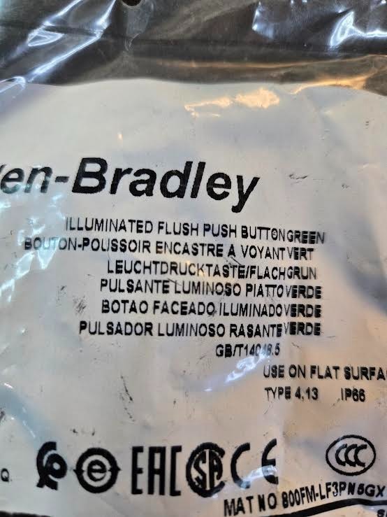 ALLEN BRADLEY 800FM-LF3PN5GX10 GREEN 800F 22.5 mm PUSH BUTTON $39 EACH BO
