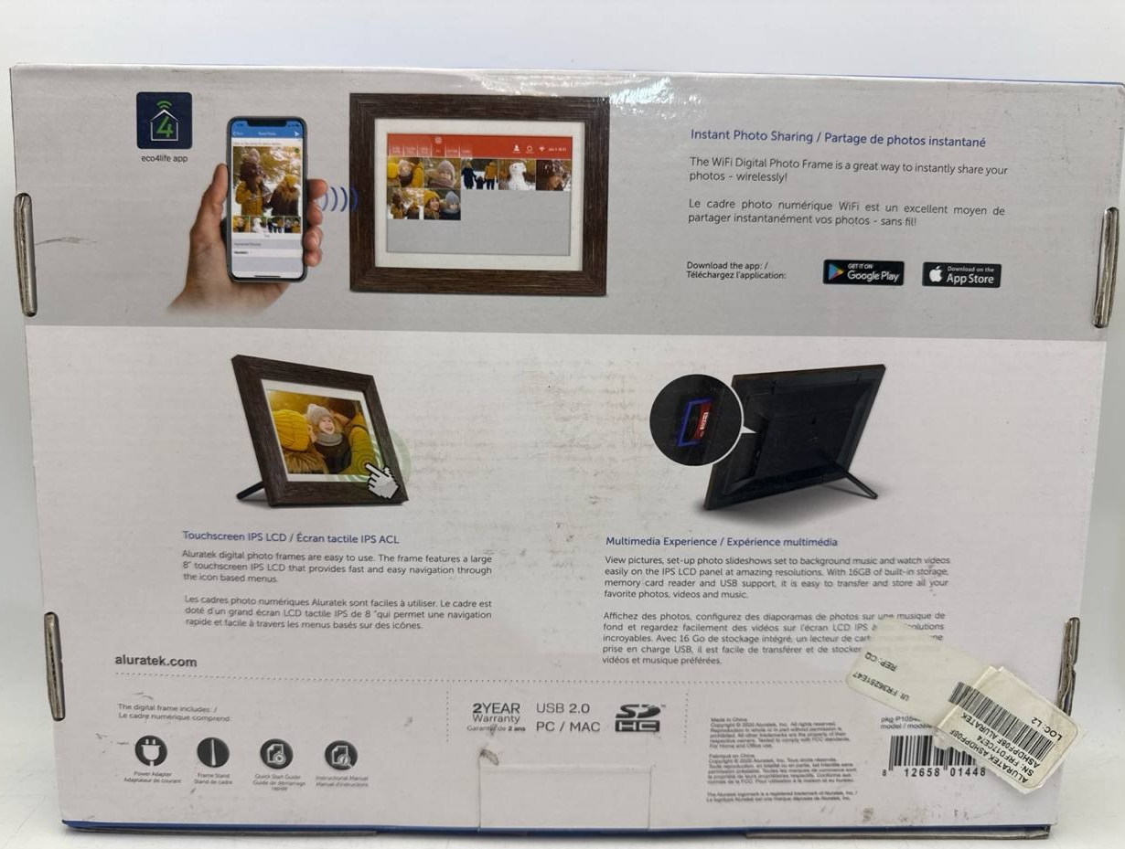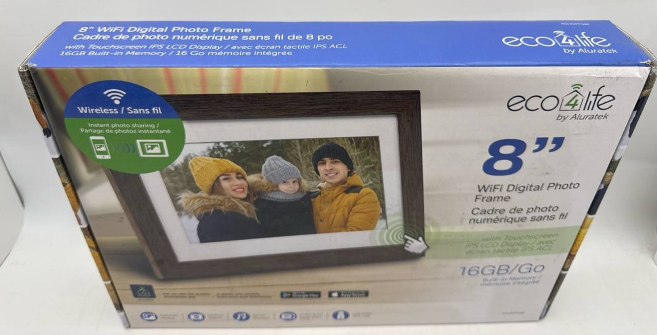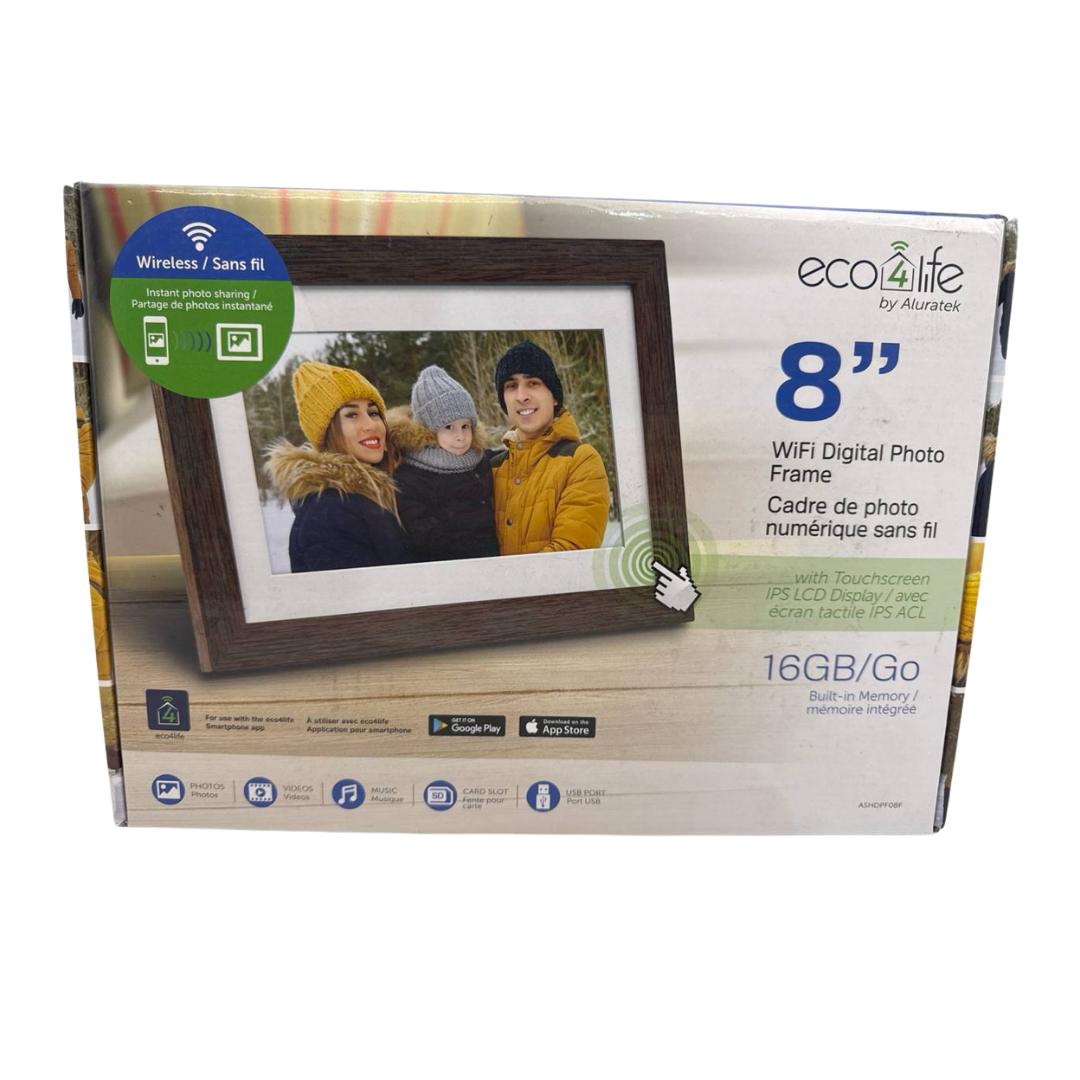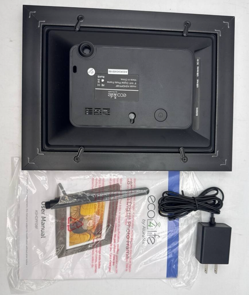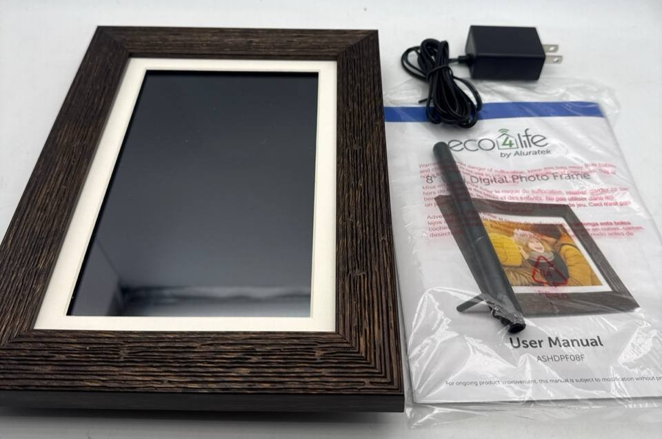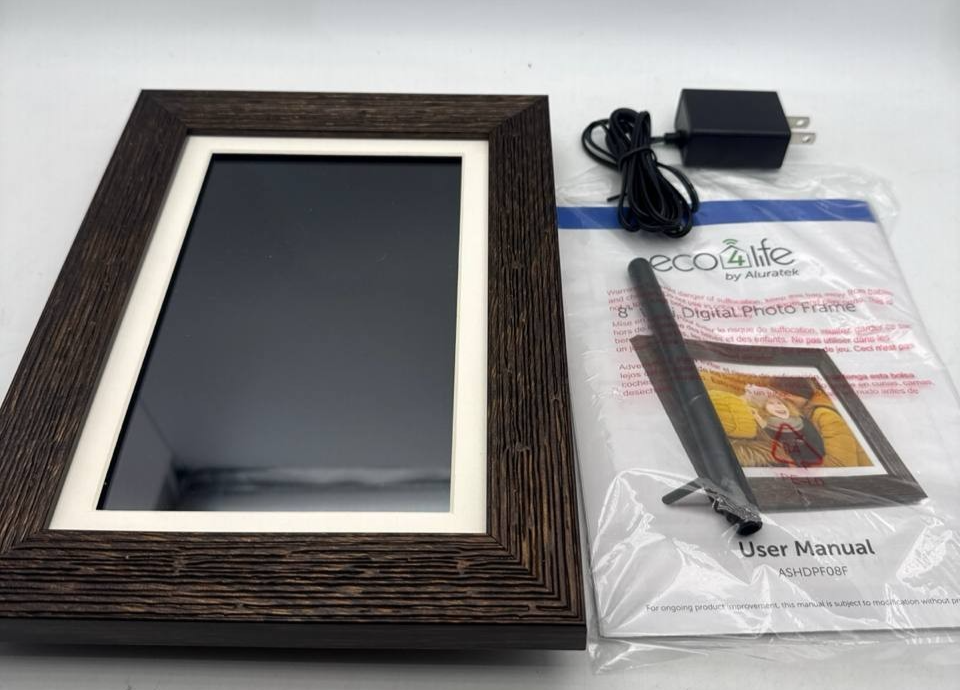 Item includes: Please note: This item includes 1x Aluratek eco4life 8" Smart WiFi Digital Photo Frame, 1x Adjustable Stand Support, 1x AC Power Adapter, and 1x User Manual Only ? As Pictured. No other accessories are included.