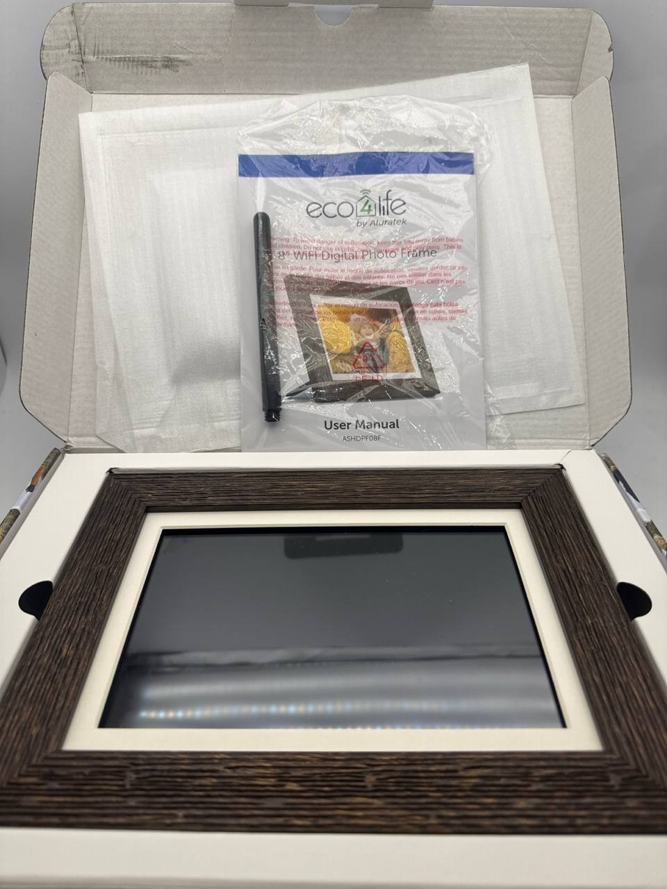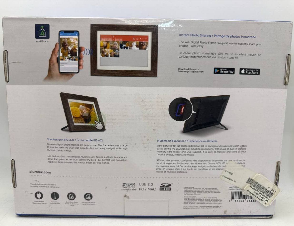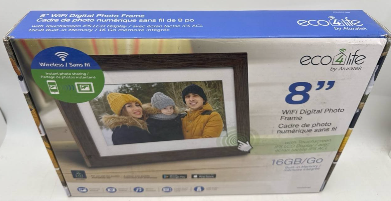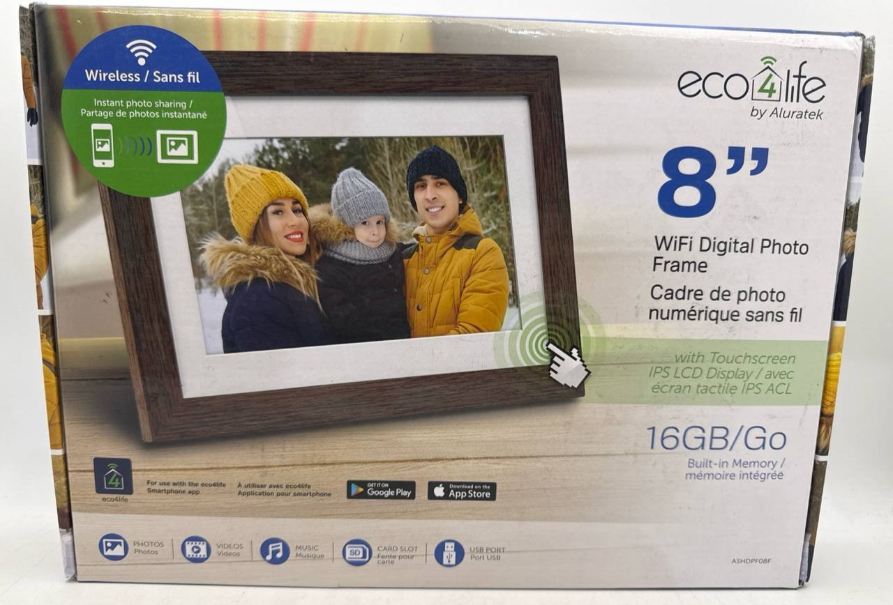 Item includes: Please note: This item includes 1x Aluratek eco4life 8" Smart WiFi Digital Photo Frame, 1x Adjustable Stand Support, 1x AC Power Adapter, and 1x User Manual Only ? As Pictured. No other accessories are included.