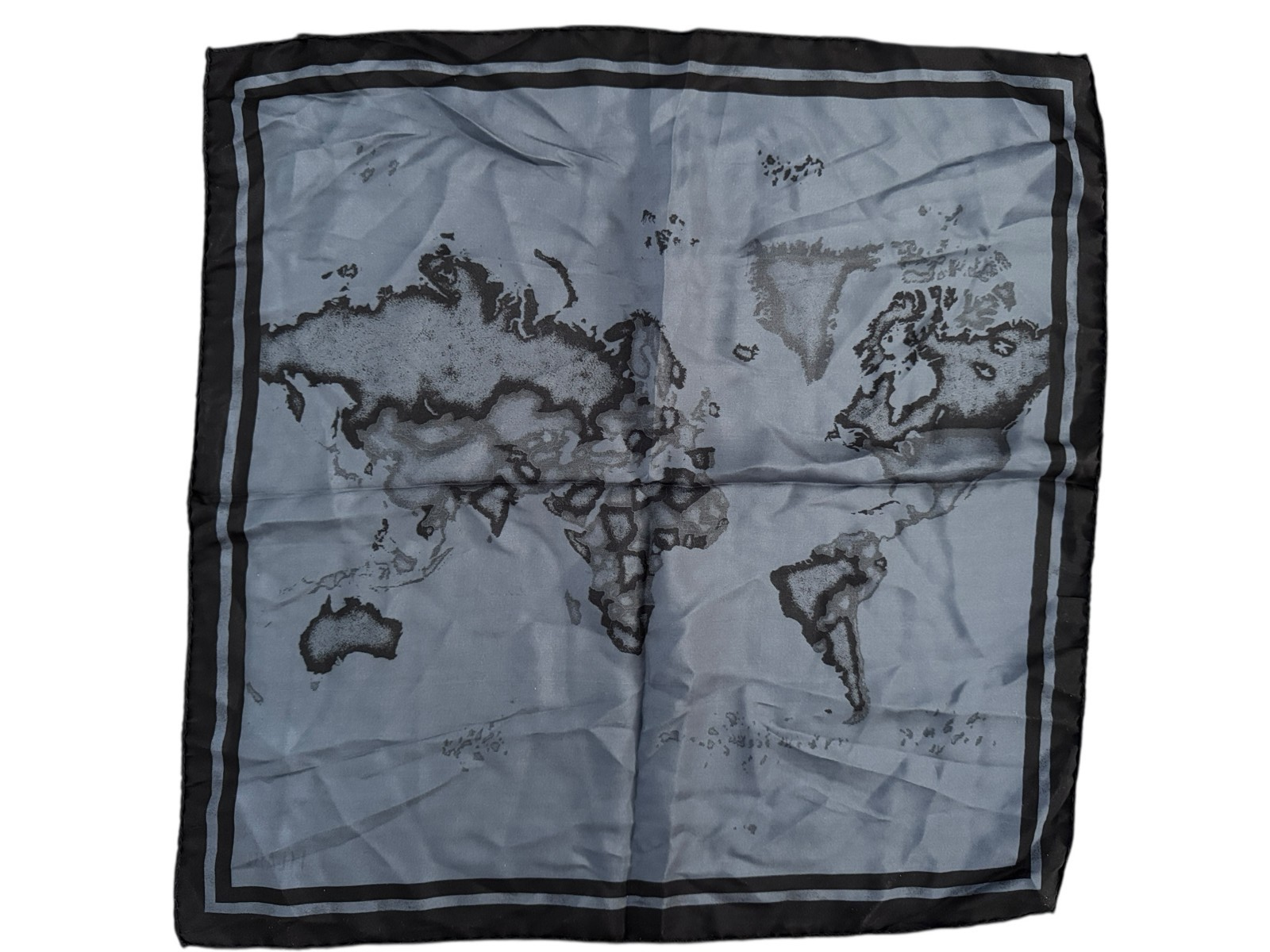 Alviero Martini 100% Silk Scarf Foulard Black World Map Print Made In Italy NEW Measures approx 20x20 inches