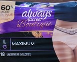 Always Discreet Boutique ~ Size Large ~ Women Incontinence Underwear ~ 18 Count