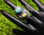 Amazonite Labradorite Ring | Boho Double Stone Adjustable Ring | Sterling Silver Tribal Jewelry | Healing Crystal Gift for Her