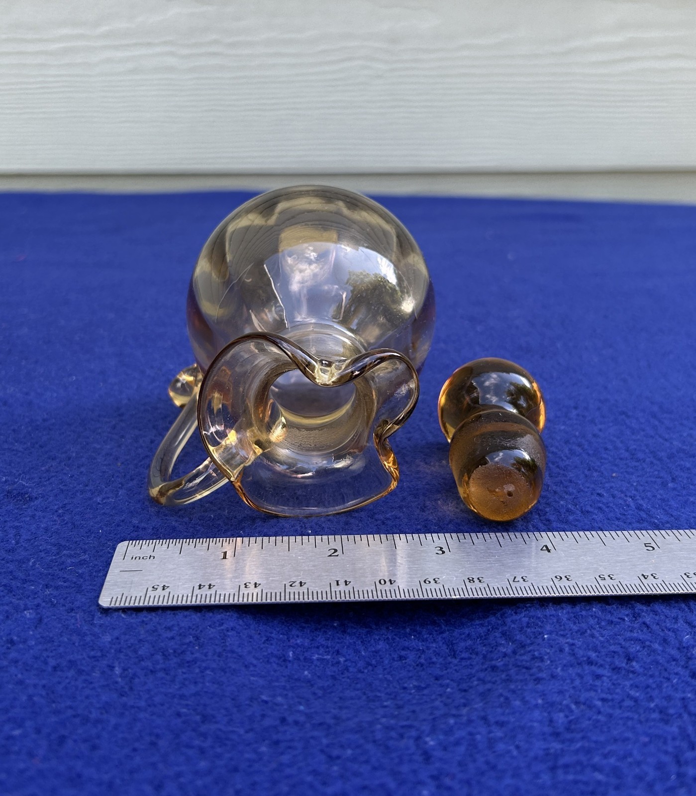 Vintage amber cruet hand blown with ball stopper, pulled attached handle, softened pontil, panelled optic, I purchased this at a sale a while back from my friend who said she had for over 40 years. No damage at all.