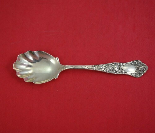 American Beauty by Shiebler sterling silver Preserve Spoon Gold Washed, 7 1/4". It is monogrammed (monos vary) and is in excellent condition.