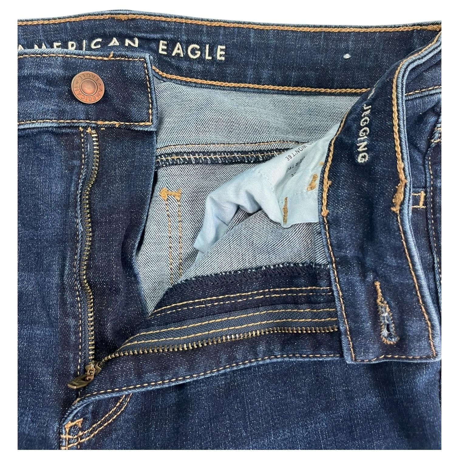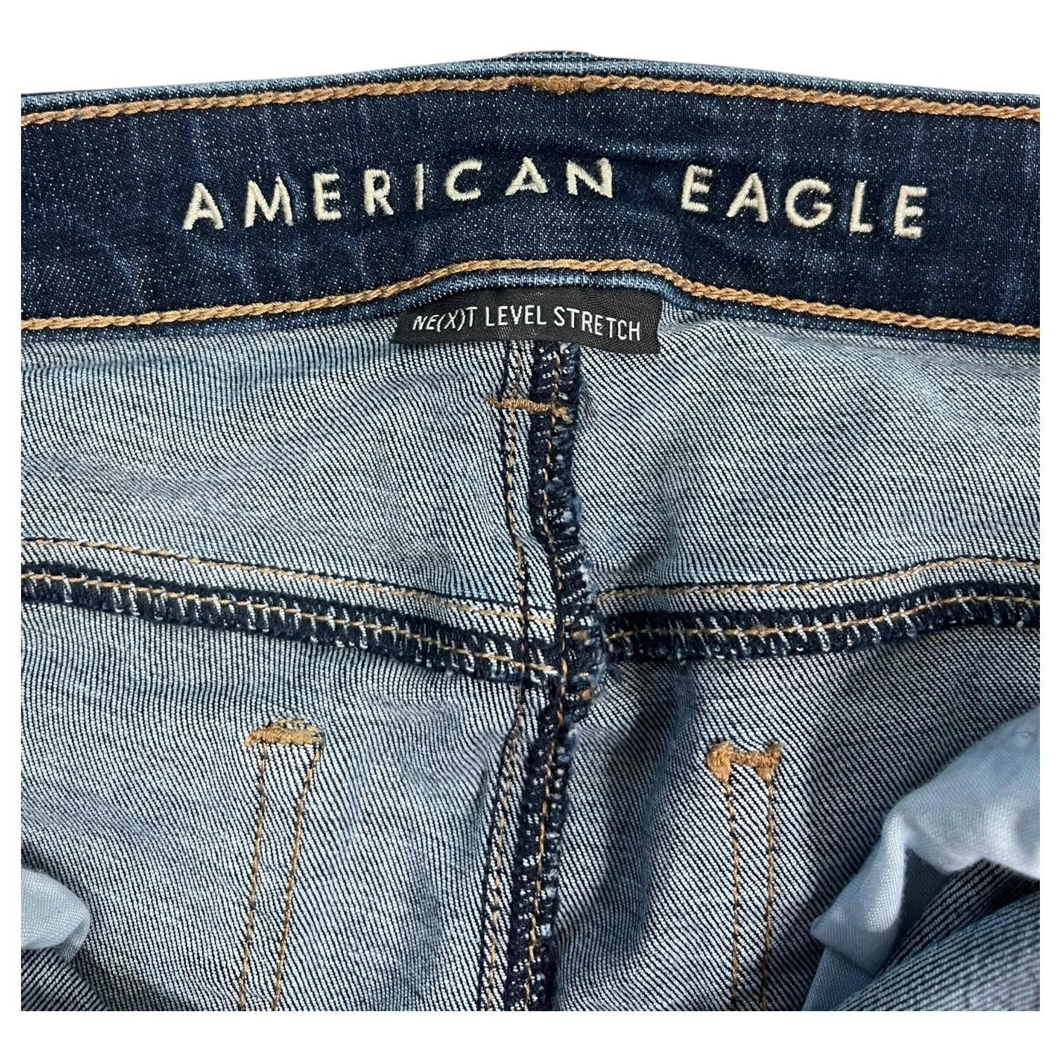 Branding: "AMERICAN EAGLE", "SUPER HI-RISE JEGGING", "NE(X)T LEVEL STRETCH" inside waistband