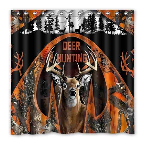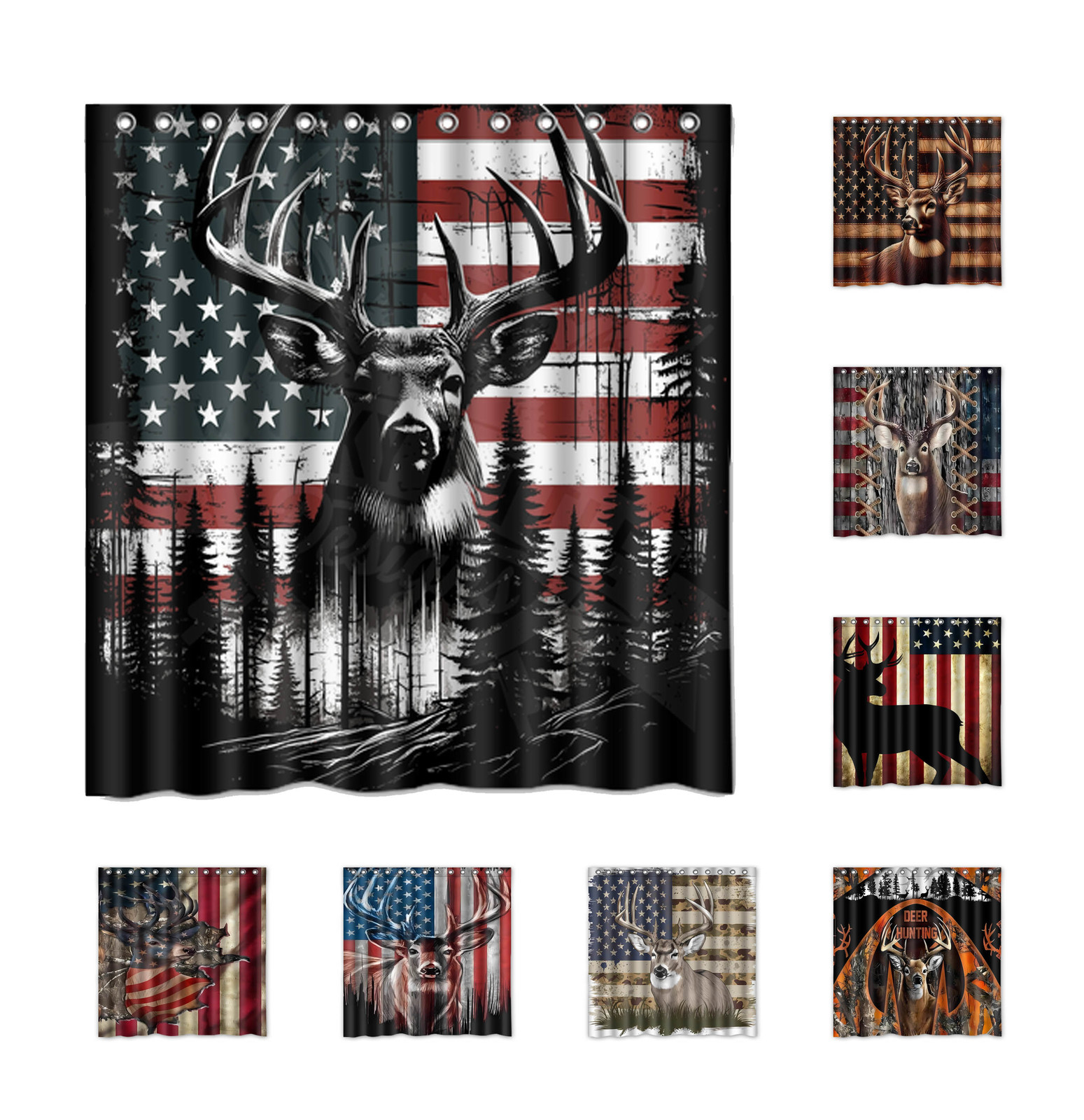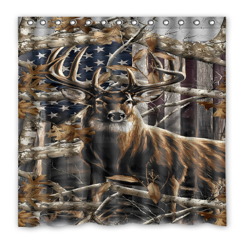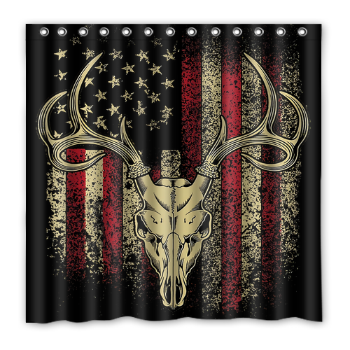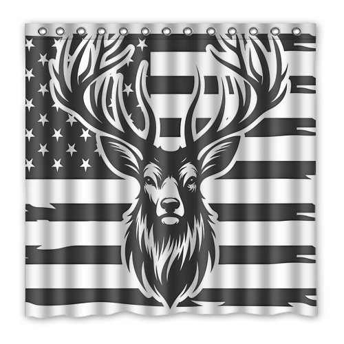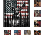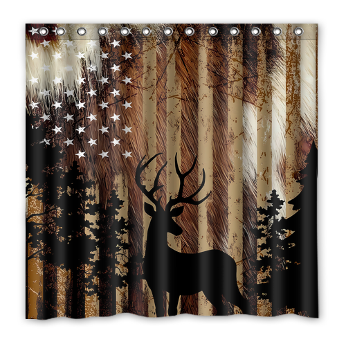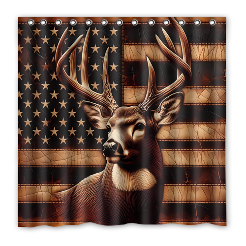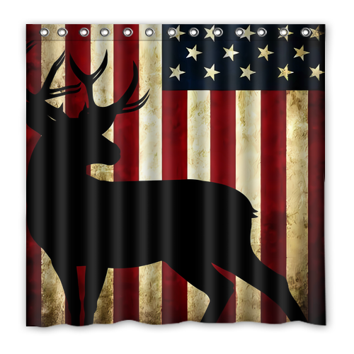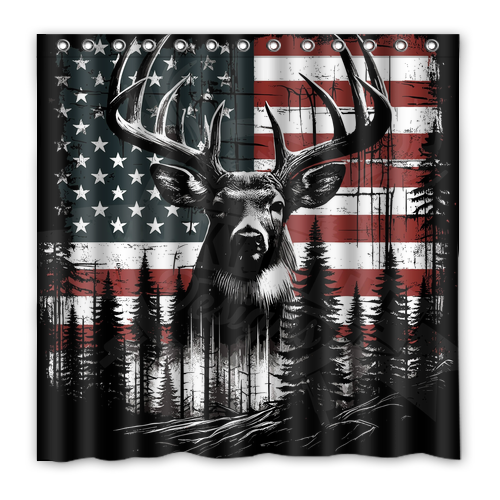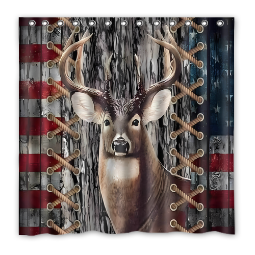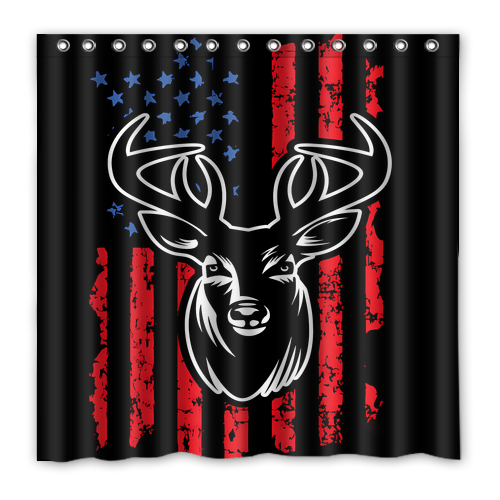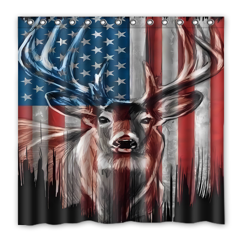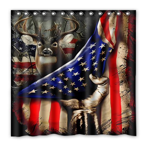 - American Flag Deer Custom Waterproof Polyester Shower Curtain 4 Size