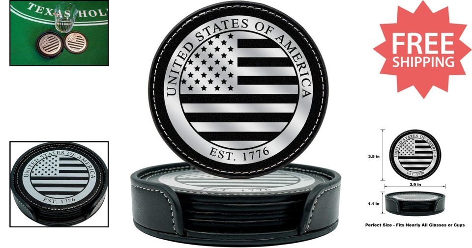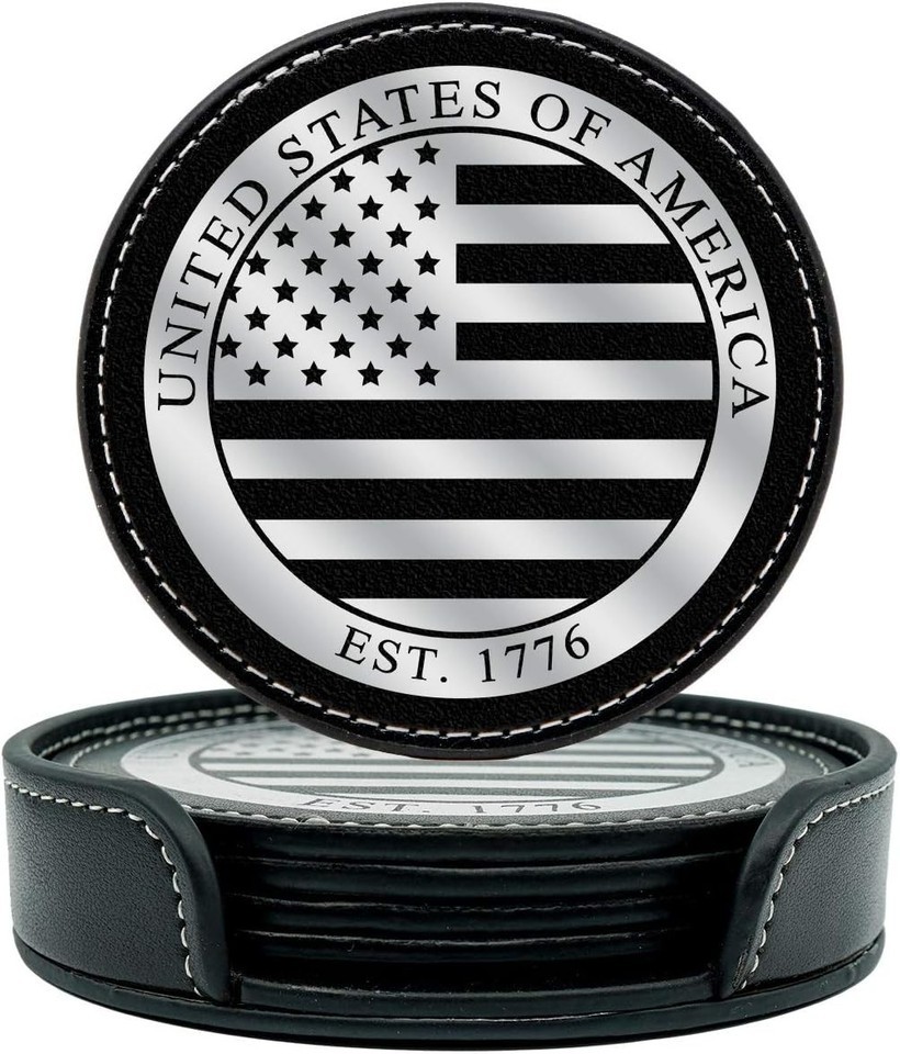 Supported by a service-disabled Marine veteran team, our product also helps support military families. Celebrate your patriotism and personal style with these beautiful coasters, perfect as a gift for veterans, loved ones, or for yourself. Add a touch of American pride to any setting with this stunning Leather American Flag Coasters Set.