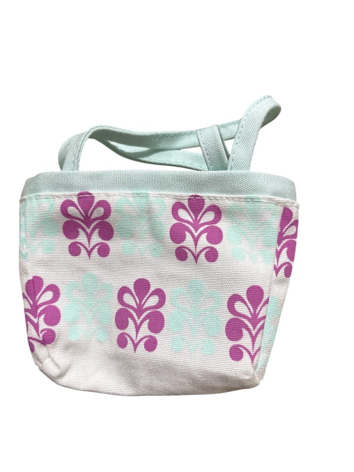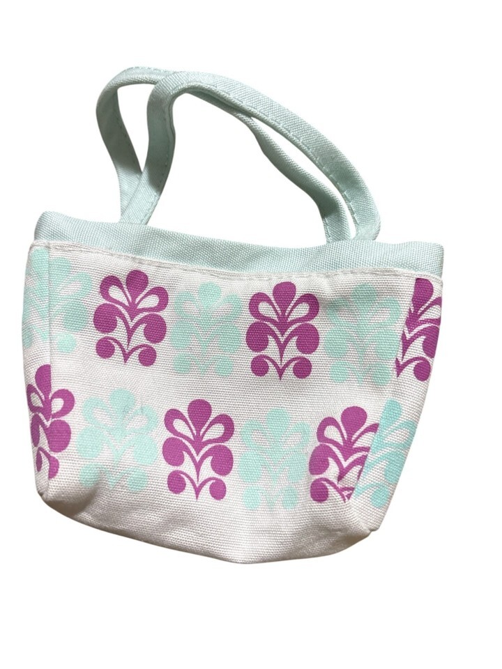 Compact and lightweight, this tote is suitable for your 18" doll to carry small essentials. Its floral design adds a fresh and vibrant touch. ? Made of durable canvas material ? Dual carry handles for convenience ? Vibrant floral patterns in purple and mint tones Condition: Pre-Owned Good