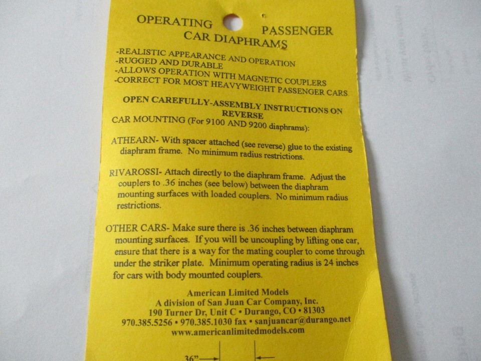 American Limited Athearn Heavyweight Passenger Cars Operating Black Diaphragms. 6 Pair HO Scale.